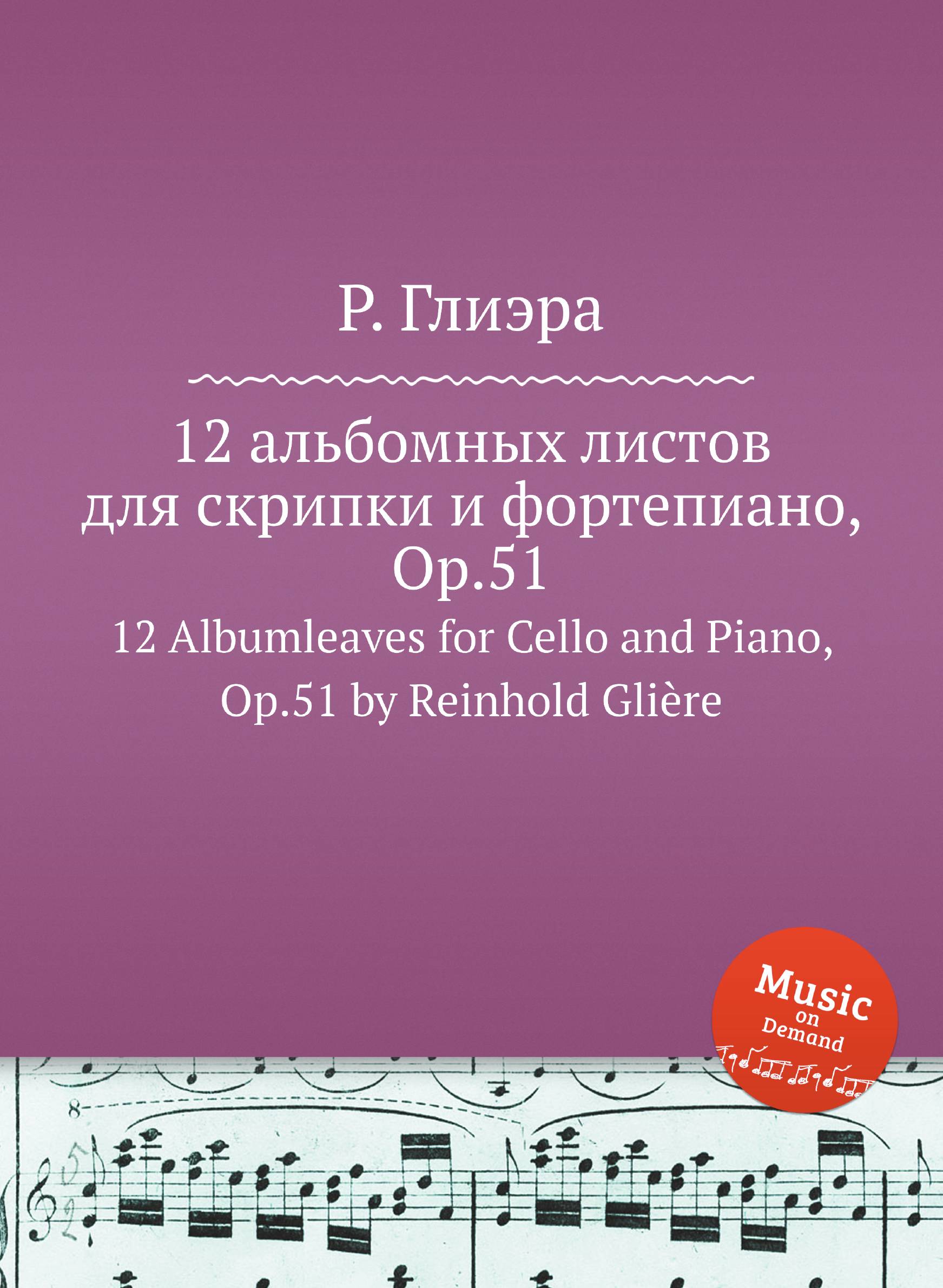 Репринтное нотное издание Glière, Reinhold "12 Albumleaves for Cello and Piano, Op.51".