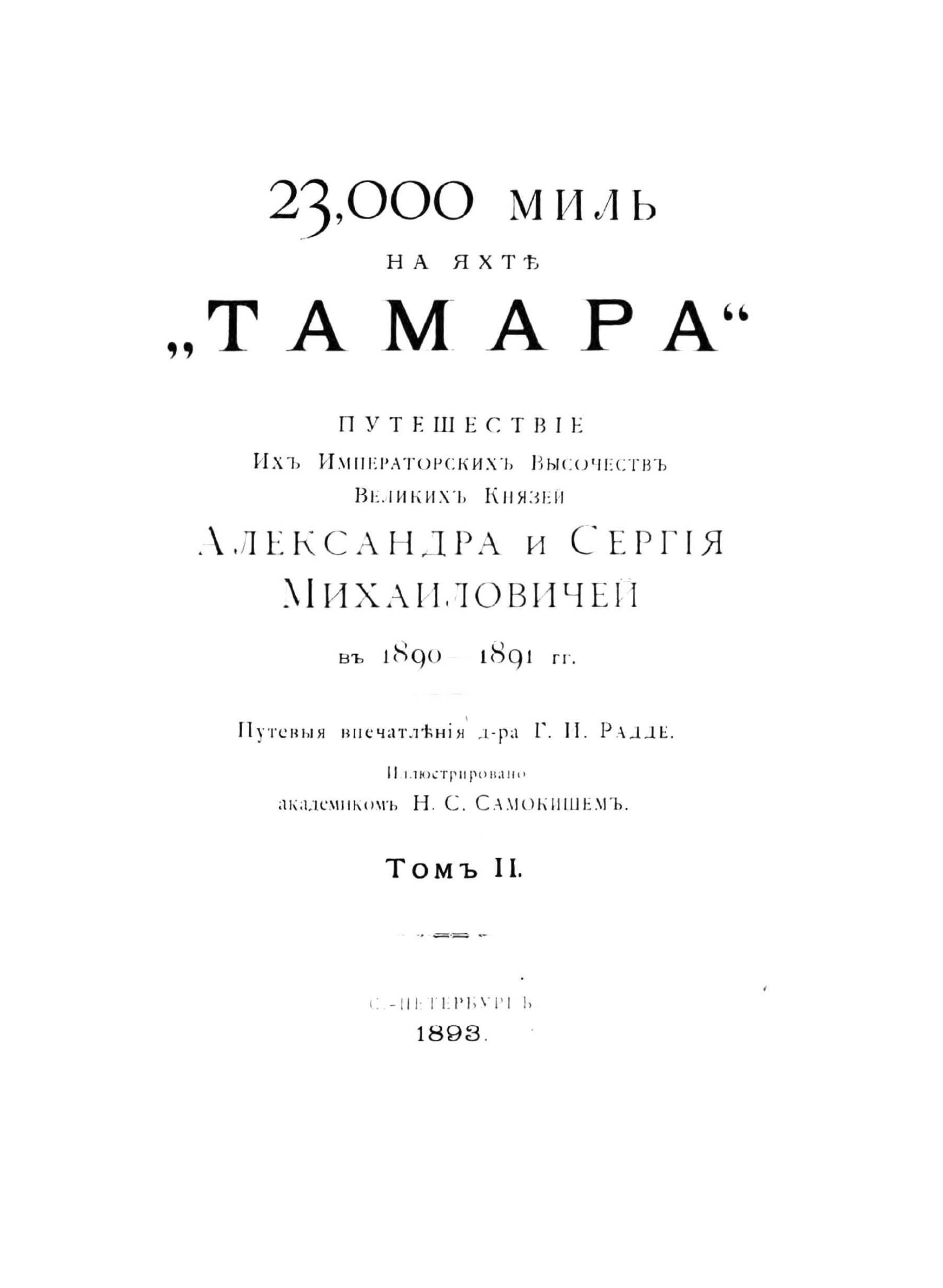 Печатная книга «23000 миль на яхте "Тамара", Путешествие Великих Князей Александра и Сергея Михайловичей в 1890-1891 гг. Том 2» в мягкой обложке, язык - русский. В книге 269 страниц, она напечатана на белой офсетной бумаге плотностью 80 г/м². Формат издания — 205x280 мм. Все книги аккуратно упаковываем в прочный трёхслойный непрозрачный картонный конверт.