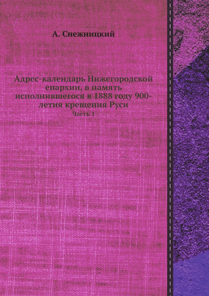 Печатная книга «Адрес-календарь Нижегородской епархии, в память исполнившегося в 1888 году 900-летия крещения Руси, Часть 1» в мягкой обложке, язык - русский. В книге 504 страниц, она напечатана на белой офсетной бумаге плотностью 80 г/м². Формат издания — 148x210 мм. Все книги аккуратно упаковываем в прочный трёхслойный непрозрачный картонный конверт.
