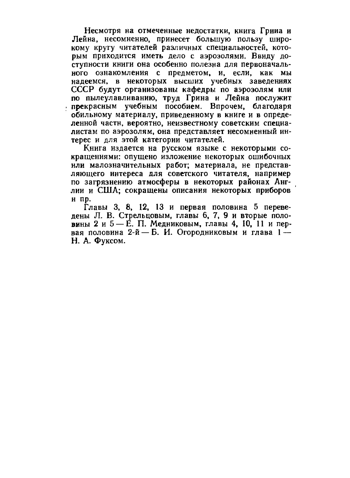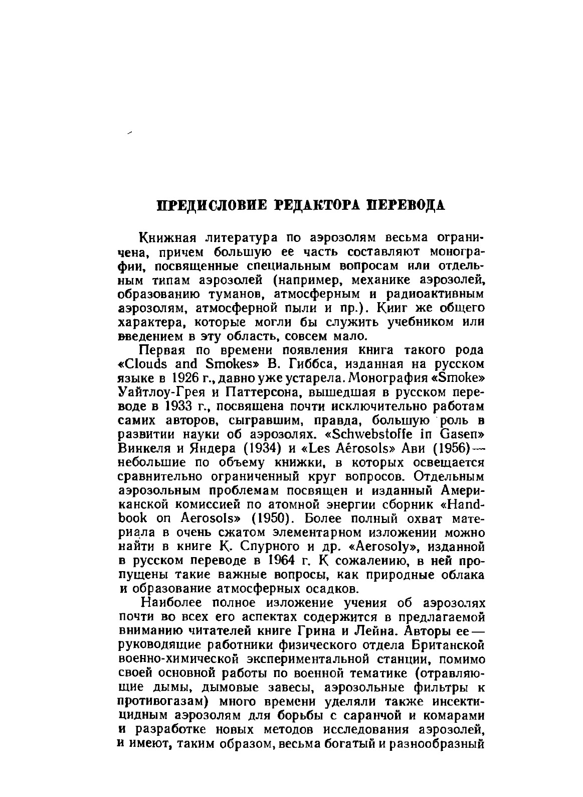 Книга является переводом монографии, подготовленной специалистами в области изучения аэродисперсных систем - работниками Британской военно-химической службы. Монография состоит из двух частей: первая посвящена физическим и физико-химическим свойствам аэрозолей, вторая - образованию, применению и разрушению их. Книга представляет большой интерес для научных работников, инженеров-технологов, физиков, физико-химиков, агрохимиков, метеорологов, геофизиков, медиков службы сангигиены и военных специалистов.