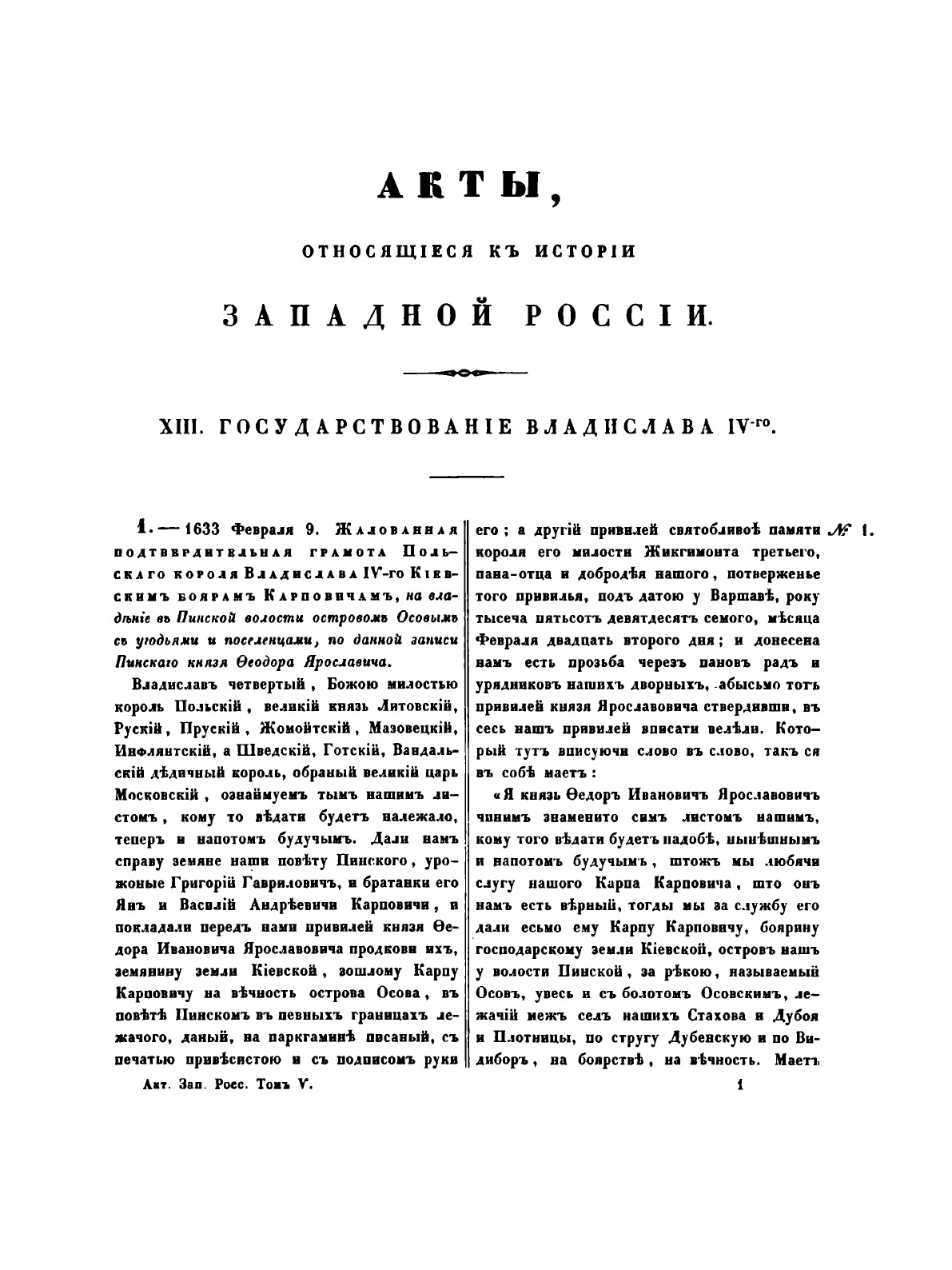 Акты, относящиеся к истории Западной России, собранные и изданные археологической комиссией. Том 5. 1633-1699 гг.