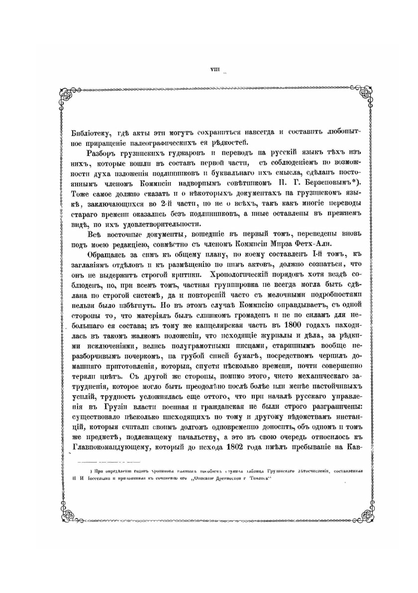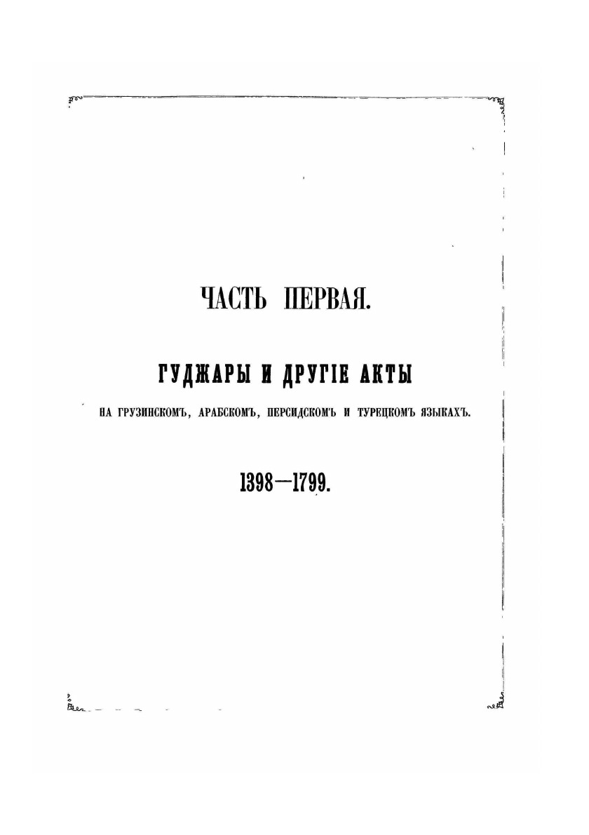 Документы по истории Кавказа с X века по 1862 год издавались по инициативе русских властей под редакцией председателя Кавказской археографической комиссии Адольфа Петровича Берже (1828 – 1886). В двенадцати томах издания опубликованы разнообразные сведения по истории народов Кавказа: арабская хроника, фирманы, гуджары (жалованные грамоты) и другие акты, главным образом XIV — первой половины XIX века на грузинском, армянском, русском, арабском, персидском, татарском, турецком языках с русским переводом, а также родословные местных ханов и султанов. Каждый том включает документы за время правления того или иного кавказского наместника.