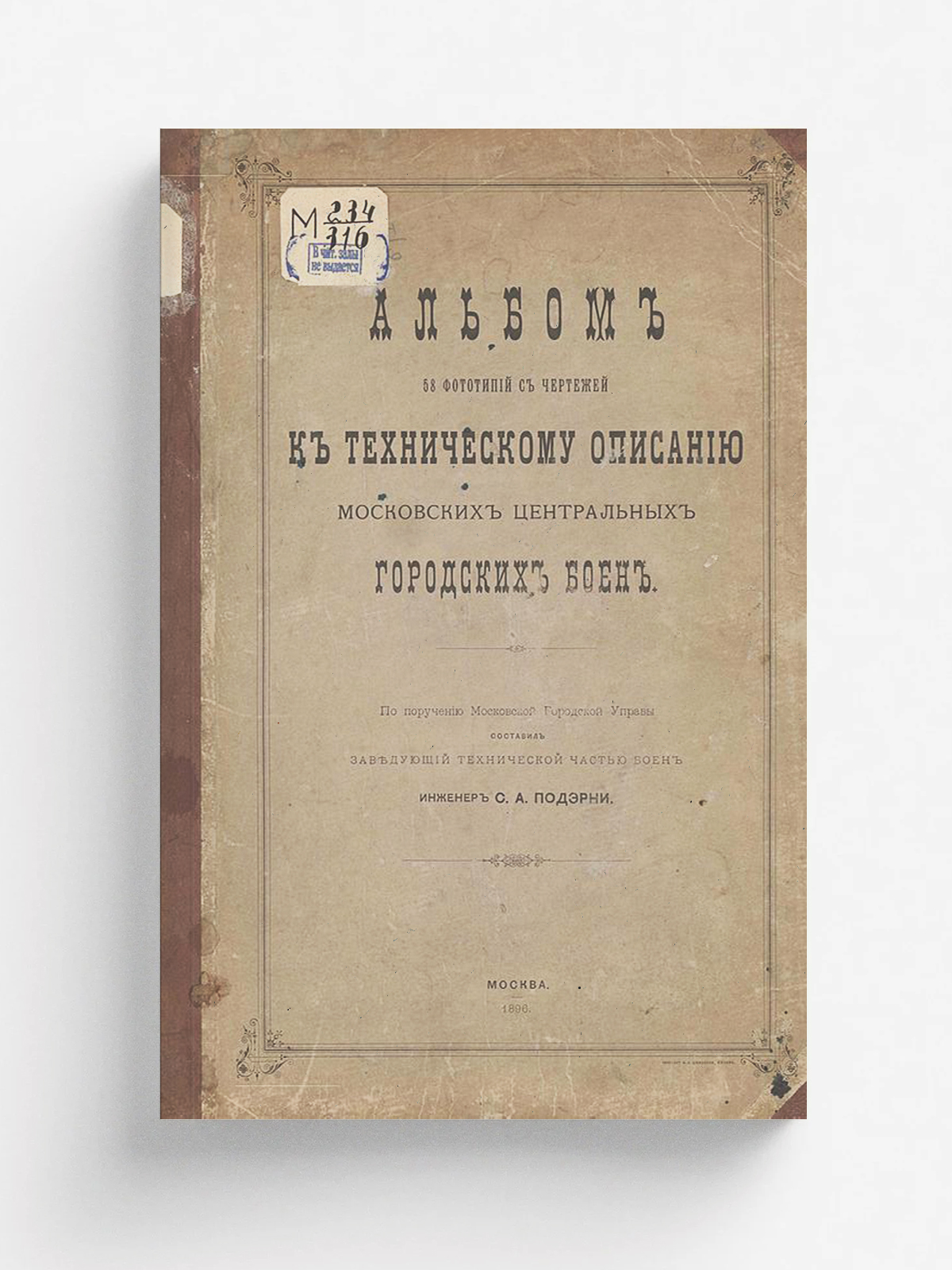 Альбом к техническому описанию Московских центральных городских боен [Текст] : 58 фотокопий с чертежей / сост. С. А. Подэрни. — Москва : [б. и.], 1896. — 58 л. : ил.; 36 см.