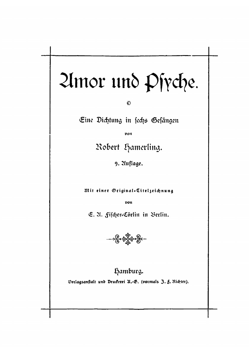 Печатная книга «Amor und Psyche, Eine Dichtung in sechs Gesängen» в мягкой обложке, язык - немецкий. В книге 142 страниц, она напечатана на белой офсетной бумаге плотностью 80 г/м². Формат издания — 148x210 мм. Все книги аккуратно упаковываем в прочный трёхслойный непрозрачный картонный конверт.