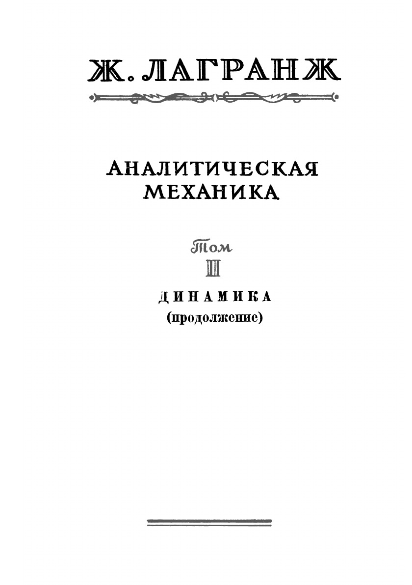 Жозеф Луи Лагранж (1736-1813) является одним из наиболее выдающихся деятелей точного естествознания 18 века. Особенно велики его заслуги в области математики, аналитической и небесной механики.Вторая часть трактата излагает аналитическую динамику таких же механических систем, причем в основу вывода системы дифференциальных уравнений движения и вывода главнейших первых интегралов этой системы (именуемых Лагранжем «принципами» или «общими свойствами движения», «относящимися к центру инерции», «к площадям», «к живым силам» и т. п.) кладется аналитическая запись «общей формулы динамики», выражающей собою комбинацию принципа Даламбера (или «петербургского принципа») с принципом возможных перемещений.