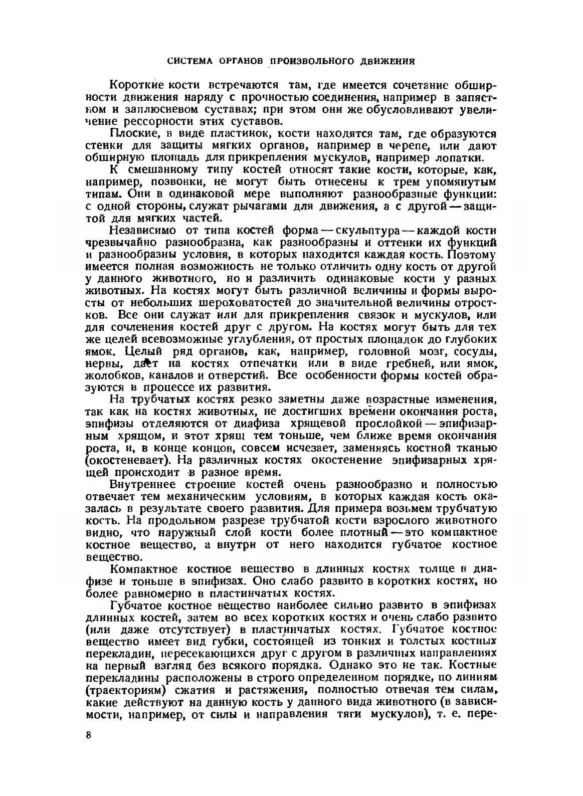 Предлагаемая вниманию читателя «Анатомия северного оленя» составлена на основании материалов, полученных при анатомических исследованиях северного оленя, производившихся кафедрой анатомии Омского ветеринарного института в период с 1922 по 1934 г. Материалом для исследования служили олени, полученные кафедрой в различное время, начиная с 1922 по 1932 г., преимущественно из Салегарда, затем из Нарьянмарской зональной станции. Всего было использовано 33 трупа, не считая отдельных частей, поступавших из секционного зала ОВИ. Исследование производилось в большинстве случаев на бальзамированном материале (4—5% раствор формальдегида), частично в замороженном виде. Инъекция сосудов производилась массой Тейхмана. Иногда производилась кислотная мацерация. Изучение симпатической нервной системы, из-за недостатка материала, производилось только обычной препаровкой, что безусловно недостаточно. По той же причине детальное изучение лимфатических сосудов не было произведено. Недостаточно изучен также и ряд других участков. Таким образом данная работа не претендует на исчерпывающую полноту. Предлагаемый материал мною лично тщательно проверен, включая все данные, полученные сотрудниками кафедры в их исследованиях, выполненных под моим руководством. Мною не проверялись подробно только данные по сосудам и нервам головы. Материал изложен по системам органов, т. е. в том порядке, как он обычно излагается в учебных руководствах по анатомии. Это сделано для того, чтобы данной книгой могли пользоваться не только специалисты-анатомы, но и все практические работники по оленеводству (научные работники, ветврачи, зоотехники и студенты). Из этих же соображений введены в самом сжатом изложении общие анатомические данные по каждой системе органов, что обеспечивает и большую целостность изложения. Все рисунки сделаны по фотографиям с препаратов и с диоптрограмм, изготовленных при активном участии ассистента В. В. Левицкого, аспиранта С. И. Иванова и старшего лаборанта ветврача А. Д. Высоцкой.