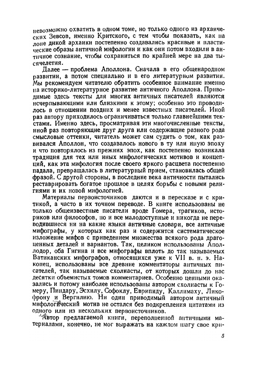 Предлагаемая вниманию читателей книга является попыткой наметить новые пути в подаче античной мифологии, которые не сводятся ни только на одно научное исследование, ни только на популярное изложение, как оно обычно понимается. Научное исследование в области античной мифологии обычно читается узким кругом специалистов. Кроме того, исследование по классической филологии требует от читателя не только знания первоисточников, знания нескольких языков, древних и новых, но еще и возможности сосредоточить в своих руках большое количество греческих и римских текстов, без владения которыми невозможно и думать об оценке и критическом восприятии такого исследования. С другой стороны, популярное изложение античной мифологии всегда понималось как пересказ для детей или для юношеского возраста античных мифов вне всякой их истории и толкования, с отбором этого материала в ограниченных условиях возрастного подхода и неизвестно на основании каких источников, не говоря уже о больших дозах субъективного вкуса и писательской манеры излагателя. Не отрицая этих двух подходов к античной мифологии целиком и даже признавая их необходимость с известных точек зрения, автор предлагаемой книги избрал несколько другой подход к предмету.