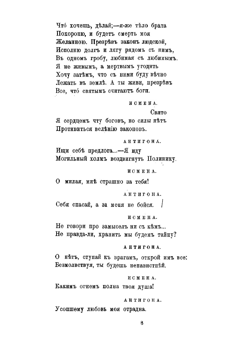 Печатная книга «Антигона» в мягкой обложке, язык - русский. В книге 101 страниц, она напечатана на белой офсетной бумаге плотностью 80 г/м². Формат издания — 148x210 мм. Все книги аккуратно упаковываем в прочный трёхслойный непрозрачный картонный конверт.