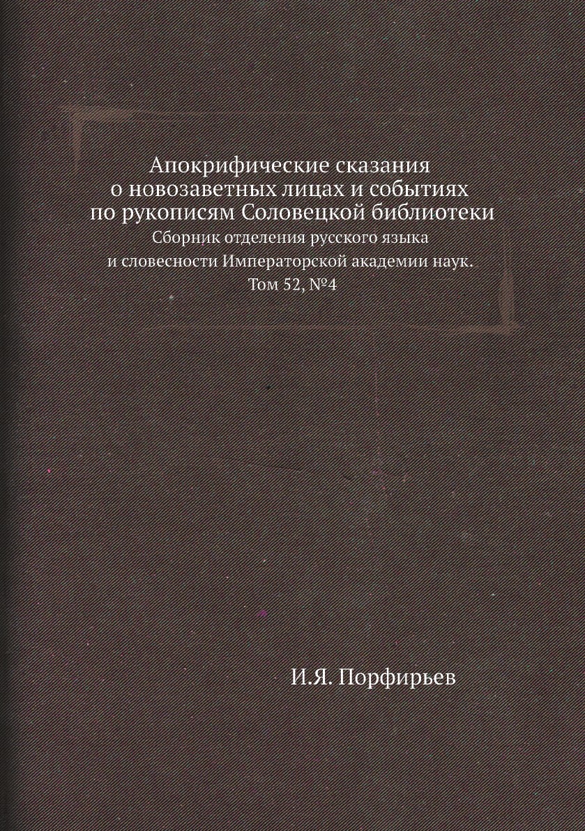 Печатная книга «Апокрифические сказания о новозаветных лицах и событиях по рукописям Соловецкой библиотеки, Сборник отделения русского языка и словесности Императорской академии наук. Том 52, №4» в мягкой обложке, язык - русский. В книге 475 страниц, она напечатана на белой офсетной бумаге плотностью 80 г/м². Формат издания — 148x210 мм. Все книги аккуратно упаковываем в прочный трёхслойный непрозрачный картонный конверт.