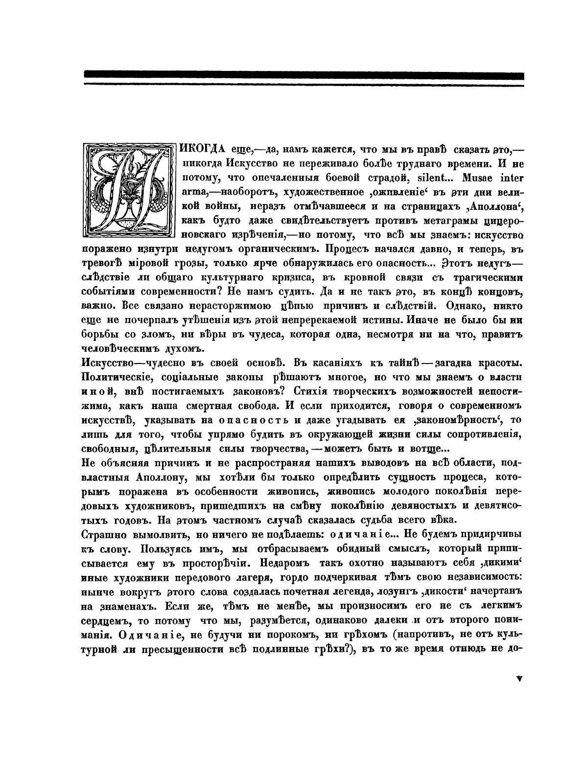 Журнал "Аполлон" издавался с 1909 по 1917 в Санкт-Петербурге. Журнал публиковал материалы по истории классического и современного русского и зарубежного искусства, обзоры выставок, театральной и музыкальной жизни в России и других странах; освещал проблемы изучения и охраны памятников русского искусства. Позиции журнала определялись идеалистическими взглядами и изощрёнными вкусами литературно-художественной элиты, видевшей в революции угрозу культуре, иллюзиями о преображении мира искусством с его духовными ценностями и совершенством формы. "Аполлон" проявлял враждебное отношение и к передвижничеству, и к официально-государственному направлению. В журнале печатались сочинения И. Ф. Анненского, А. А. Блока, В. Я. Брюсова, В. И. Иванова, М. А. Кузмина, Н. С. Гумилёва, художественно-критические статьи В. А. Дмитриева, А. А. Ростиславова, Н. Н. Лунина, Я. А. Тугендхольда. В 1918 в связи с публикацией ряда антисоветских статей "Аполлон" был закрыт.