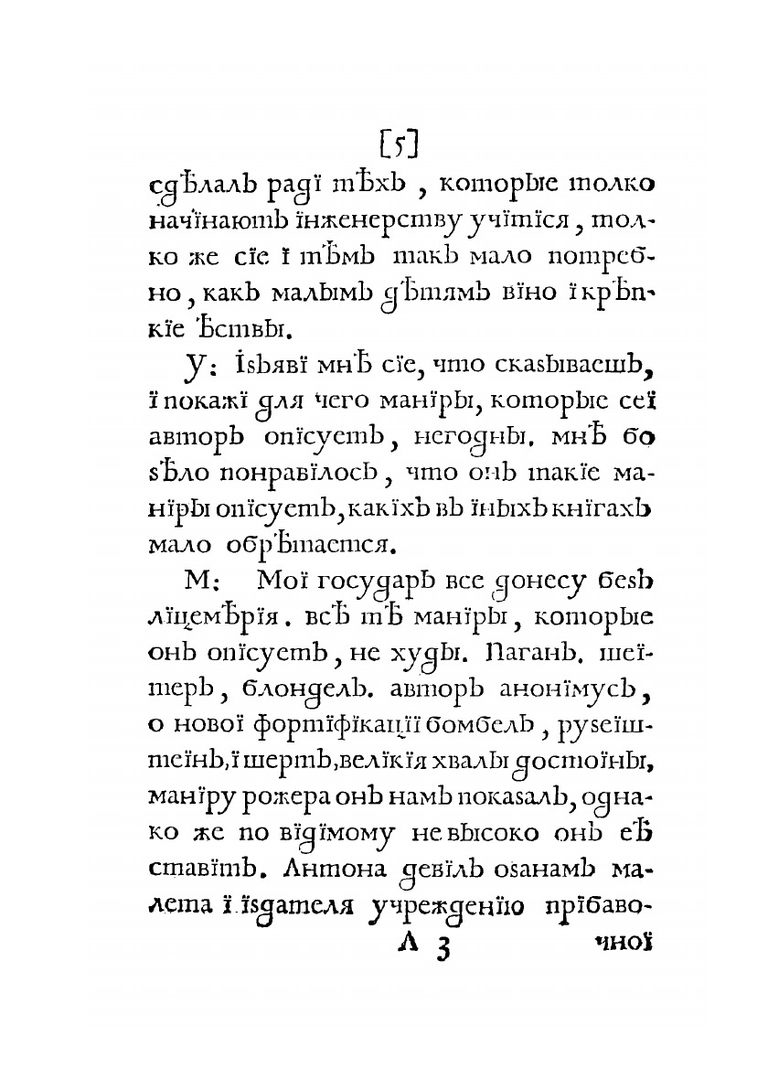 Сочинение по фортификации, изложенное в форме беседы мастера с учеником. Искусство строительства крепостей: обозрение ведущих архитектурных школ своего времени. Изложение концепций французского военного инженера, маршала Себастьена де Вобана, французского архитектора-классициста, директора Королевской академии архитектуры Франсуа Блонделя, немецкого военного инженера Георга Римплера и других. Перевод книги на русский язык редактировался лично Петром I. Штурм Леонхард Кристоф (1669-1719) – немецкий писатель, теоретик архитектуры и богослов. Профессор Университета Франкфурта-на-Одере (1702)