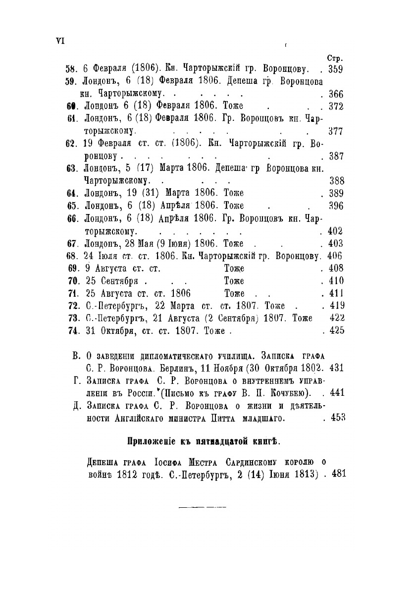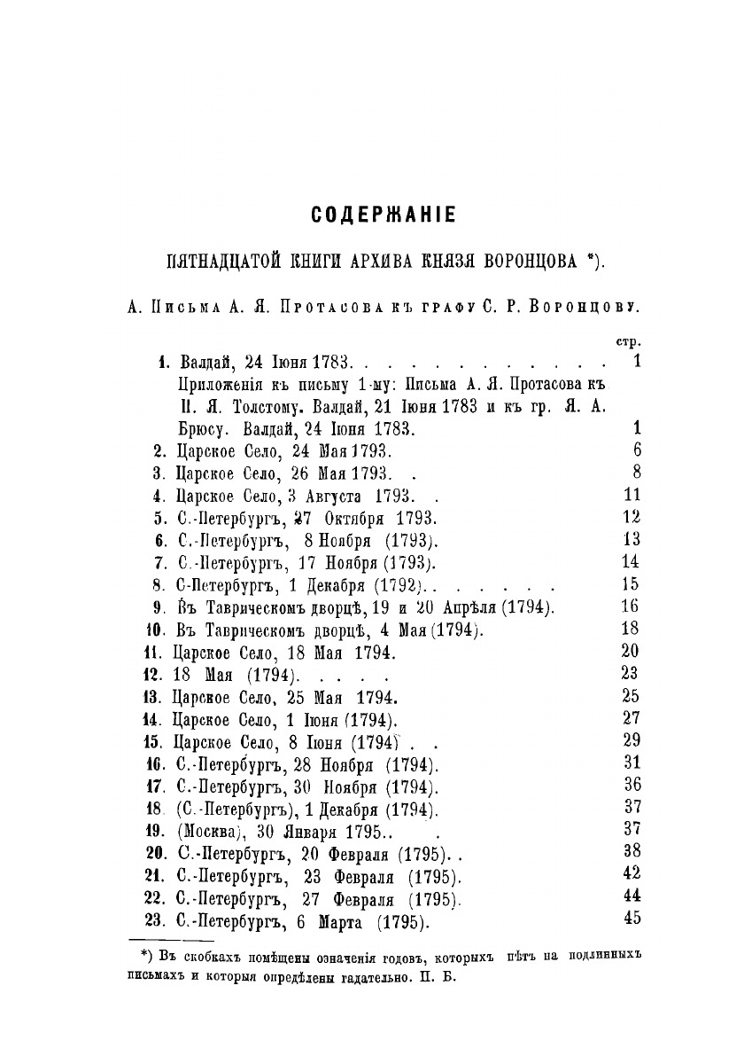 Письма А.Я. Протасова и князя Адама Чарторыжского.Документы из архива графов (с 1845 года князей) Воронцовых, крупных политических деятелей России 18 и 19 вв. Издан в 40 томах (1870—95 гг.) под редакцией П. И. Бартенева.