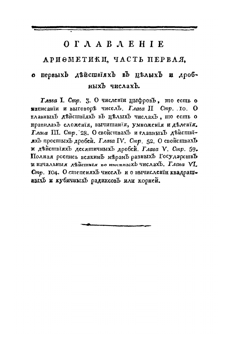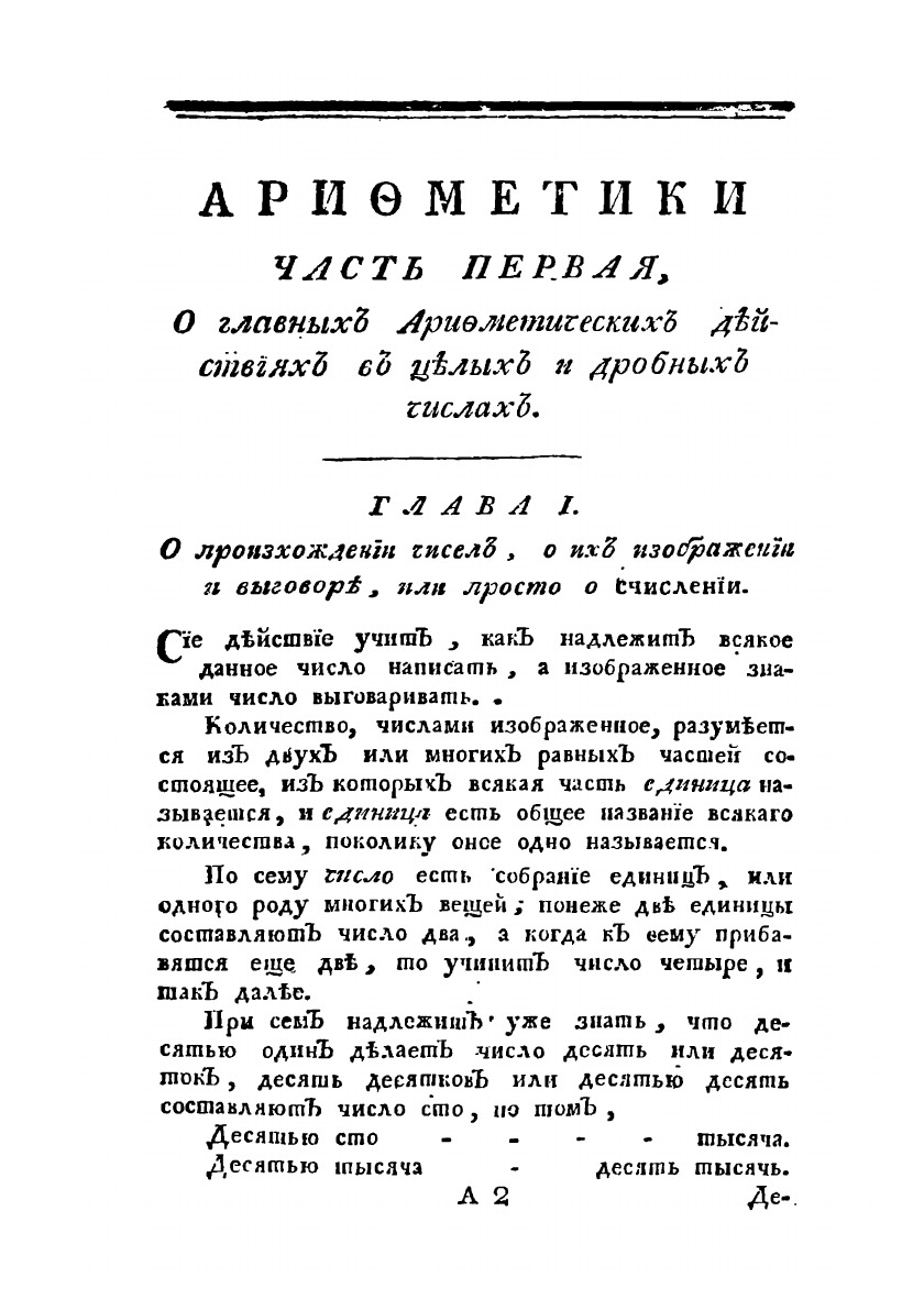 Арифметика или числовник, содержащий в себе все правила числовой выкладки, случающейся в общежитии, в пользу всякого учащегося, Воинского, Статского и Купеческого Юношества. Издание четвертое, кое вновь поправил и пополнил профессор, подполковник и кавалер Николай Курганов.