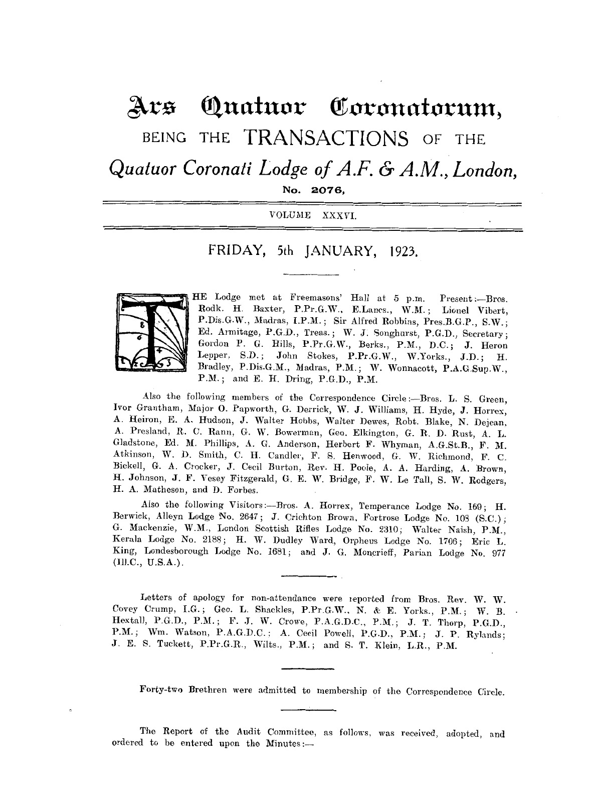 Ars Quatuor Coronatorum. Volume 36 (1923).