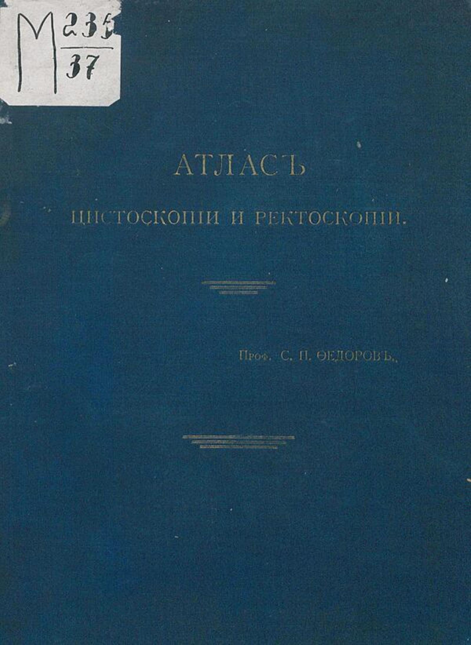 Федоров, Сергей Петрович (1869–1936). Атлас цистоскопии и ректоскопии / Проф. С.П. Федоров. — Санкт-Петербург : Т-во худож. печати, 1911. — 62 с., 6 л. цв. ил. : ил.; 28.