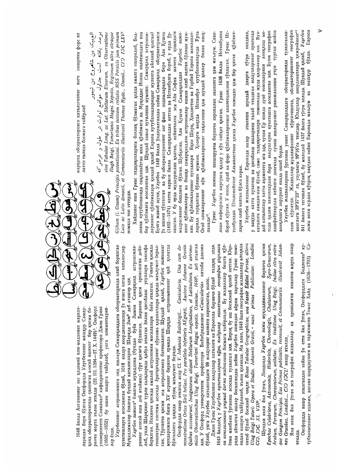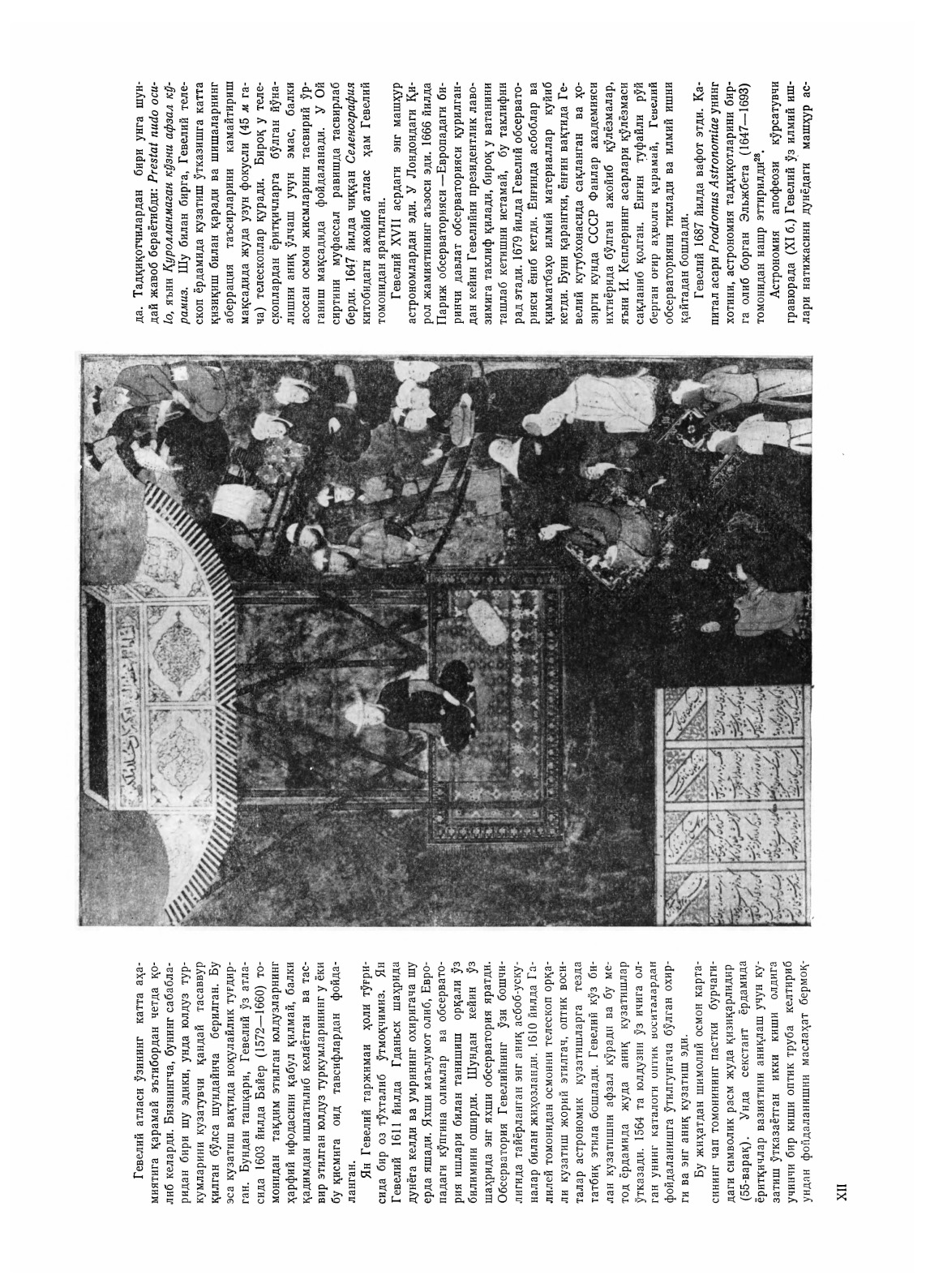 Книга содержит краткие сведения о Самаркандской обсерватории XV в. и ее руководителе знаменитом узбекском астрономе Улугбеке. В ней излагается история археологического изучения этой обсерватории и приводятся данные о распространении главного труда самаркандских астрономов Зидж Улугбек в мировой печати.Воспроизводится полностью Атлас звездного неба, составленный в XVII в. выдающимся польским астрономом Яном Гевелием, одним из первых европейских ученых поместившим звездный каталог Улугбека в своем трактате Предвестник астрономии, а также редчайшие изображения Улугбека из этого трактата из рукописей XV XVIII столетий.Два издания этой книги, вышедшие в 1968 и 1970 гг., полностью разошлись. Третье издание дополнено новыми материалами и статьей «Отраженные в небе мифы Земли», написанной доктором физико-математических наук П. В. Щегловым.