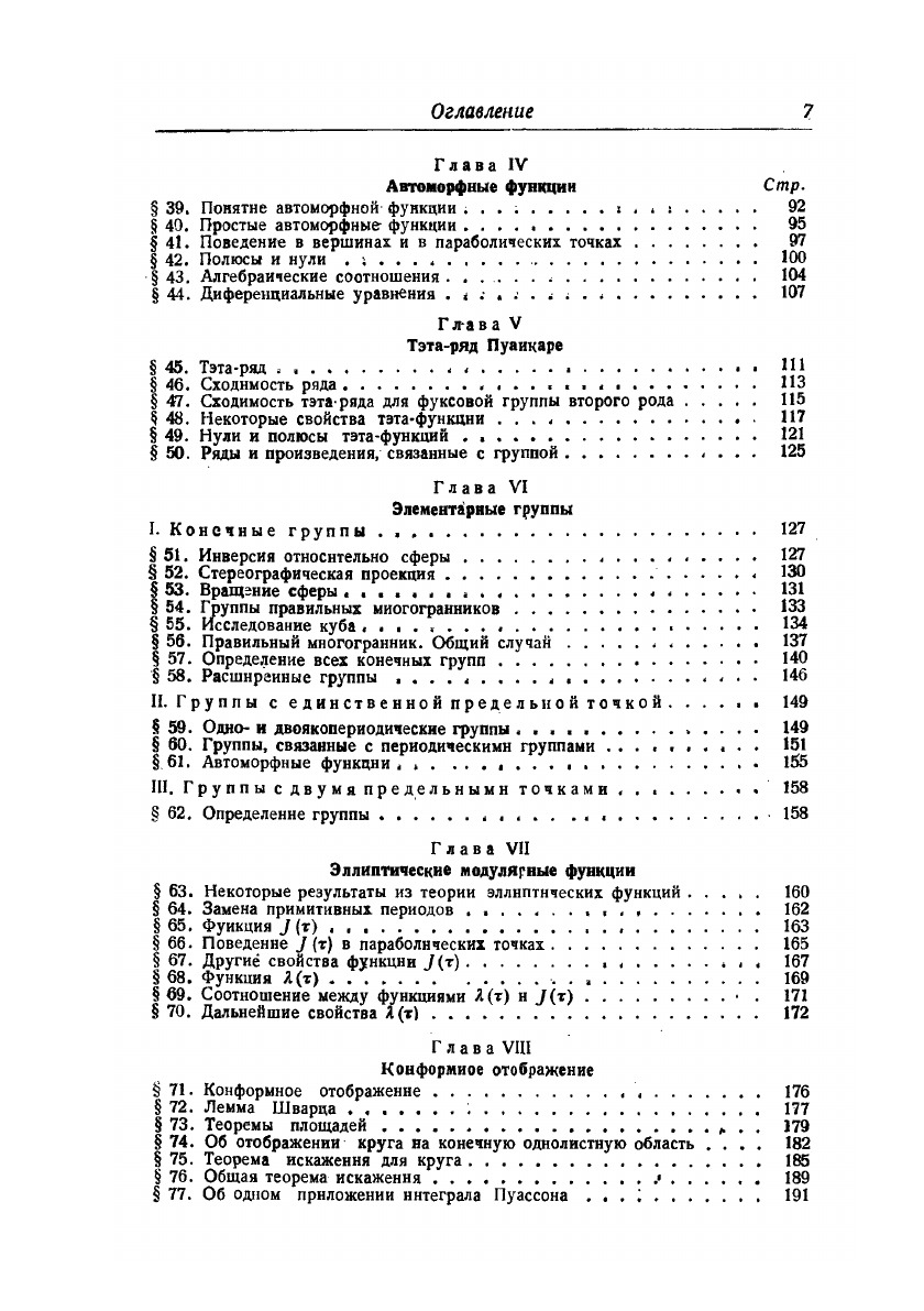 В книге рассматриваются автоморфные функции, значения которых не изменяются, если их аргументы подвергаются некоторым дробно линейным преобразованиям.