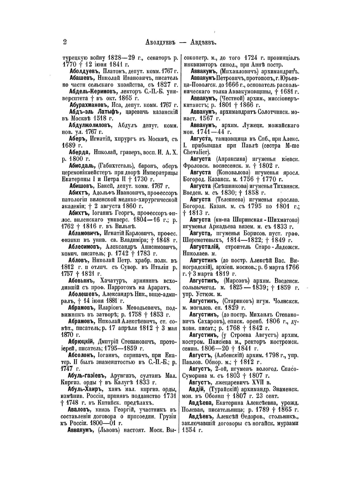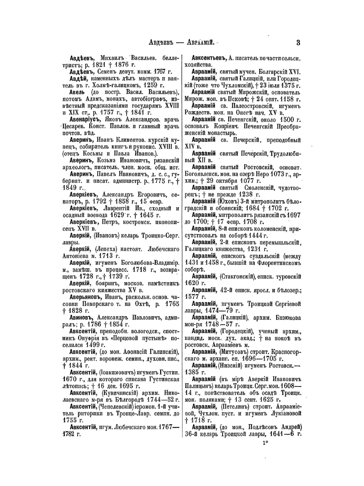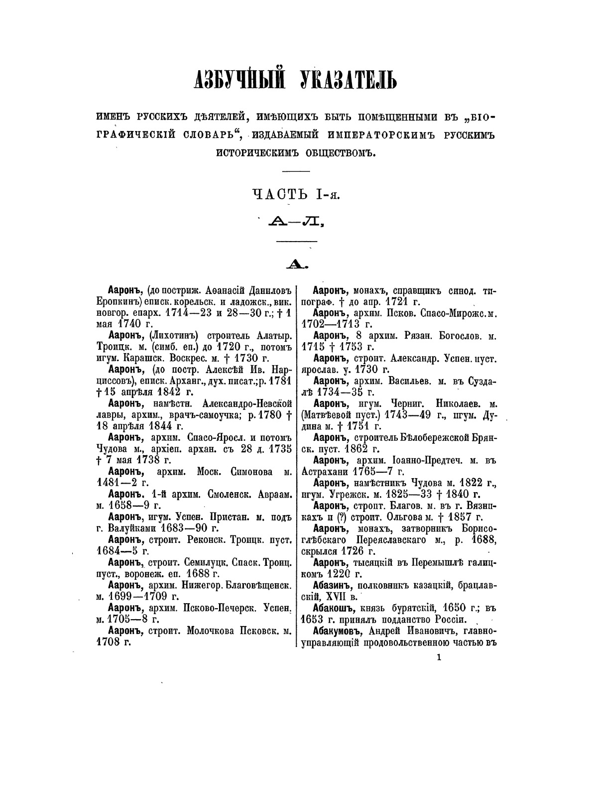Подготовительная работа Русского исторического общества по составлению биографического словаря известных отечественных деятелей. Представляет собой список имен с указанием срока жизни и основного занятия.