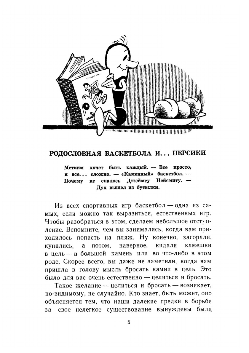 Если вам, читатель, захочется убедиться в тем, что баскетбол - это действительно замечательная игра, не поленитесь сопровождать этого маленького спортсмена в его путешествии по страницам книги. Тогда вы узнаете, почему история баскетбола связана с персиками, почему время в баскетболе измеряется только секундами и еще много интересного. Может быть, вы заинтересуетесь баскетболом, что будет совсем неплохо, ведь баскетбол - это и в самом деле великолепно!