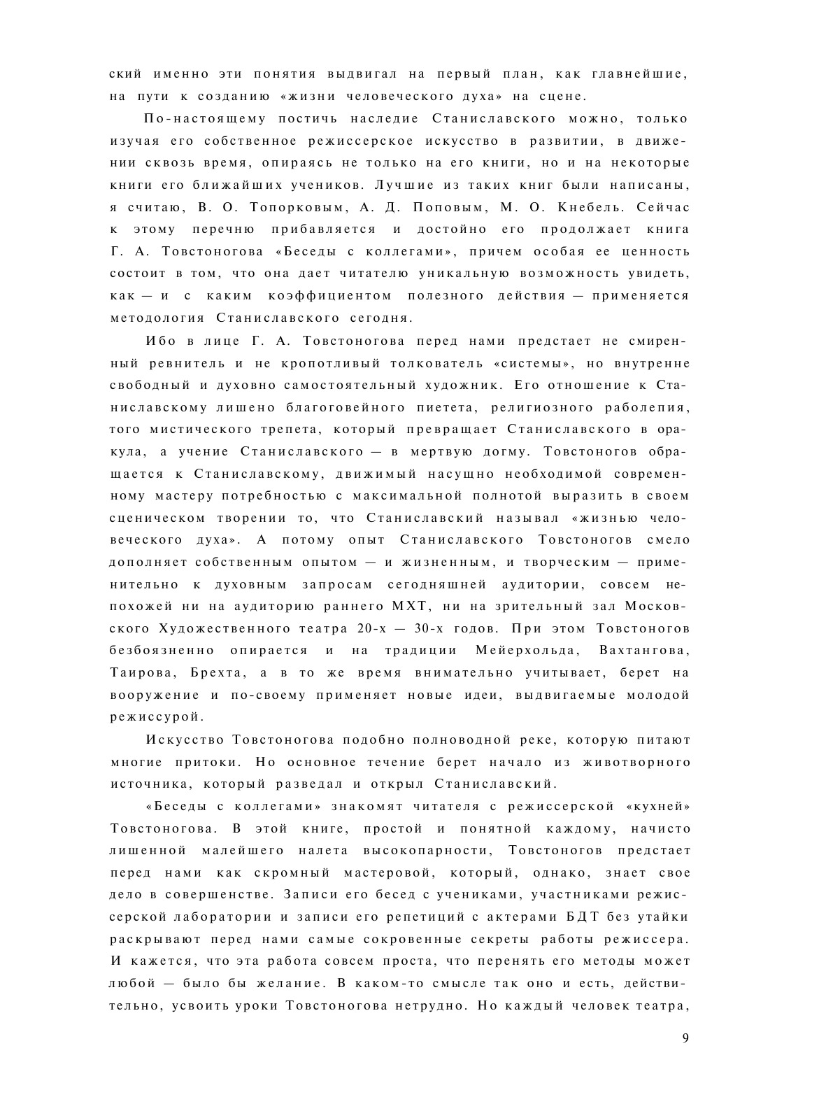 В книге Г.А. Товстоногова в свободной форме бесед с режиссерами раскрываются и осмысливаются проблемы методологии К.С. Станиславского в их непосредственной связи с практикой современной режиссуры. В книгу включены также практические занятия по методу действенного анализа пьесы и записи репетиций спектаклей "Ревизор", "Дачники", "На всякого мудреца довольно простоты", "Волки и овцы".. Вступительная статья К.Рудницкого.