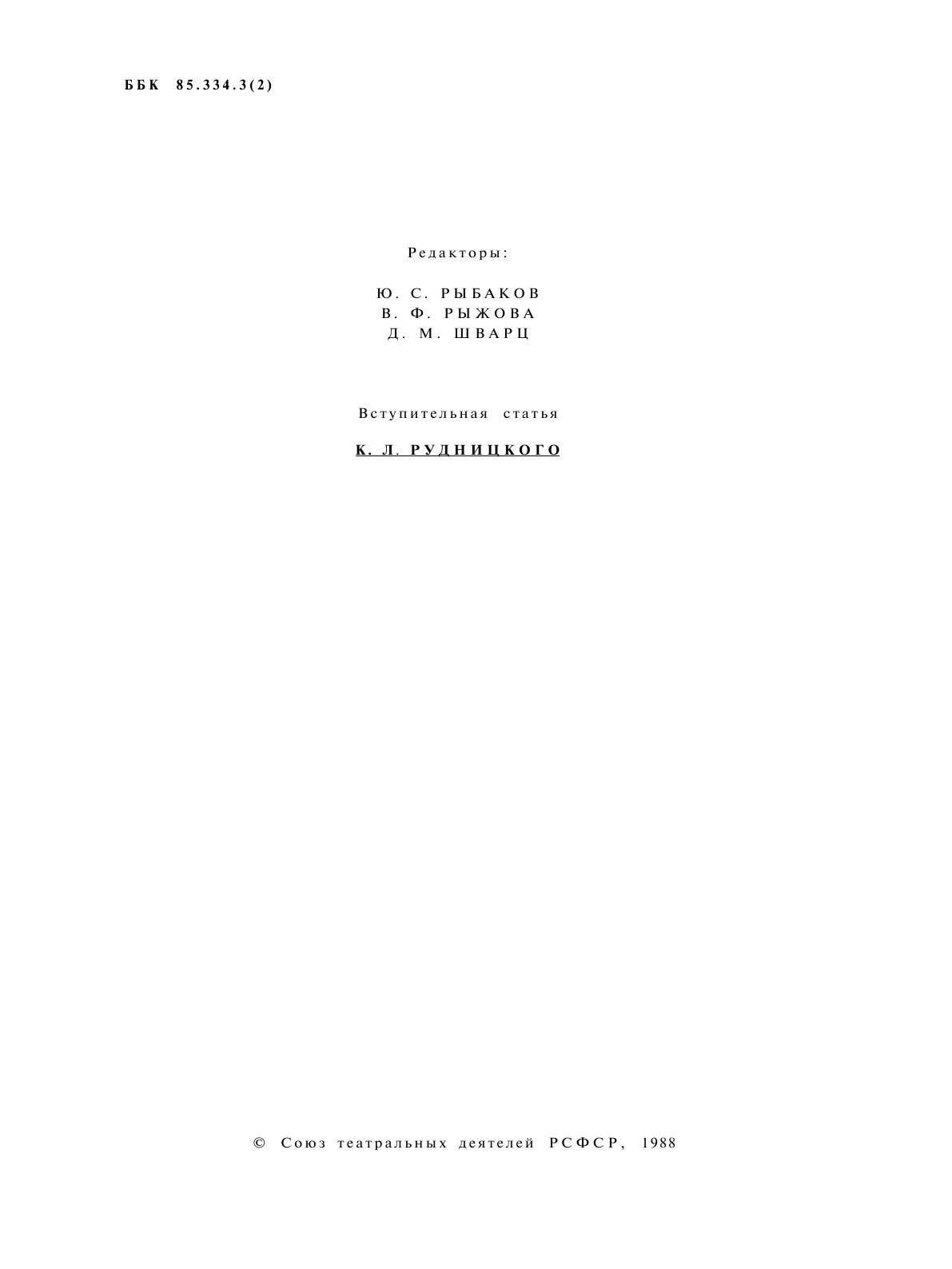 Эта книга — репринт оригинального издания (издательство "Союз театральных деятелей РСФСР", 1988 год), созданный на основе электронной копии высокого разрешения, которую очистили и обработали вручную, сохранив структуру и орфографию оригинального издания. Редкие, забытые и малоизвестные книги, изданные с петровских времен до наших дней, вновь доступны в виде печатных книг.