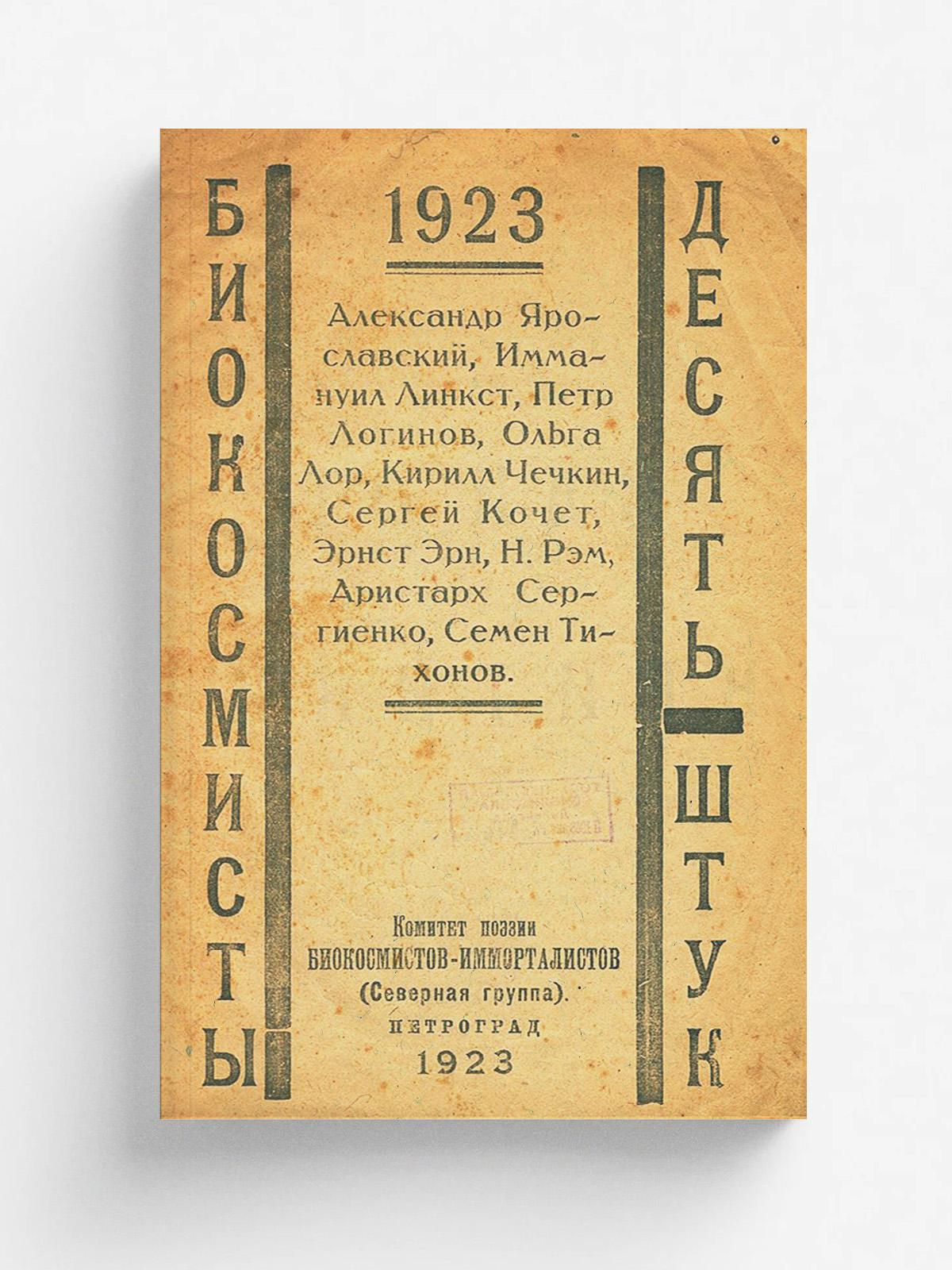 Биокосмисты. Десять штук. 1923. — Петроград : Комитет поэзии биокосмистов-имморталистов (Северная группа), 1923. — 14, [2] с.; 26 см.