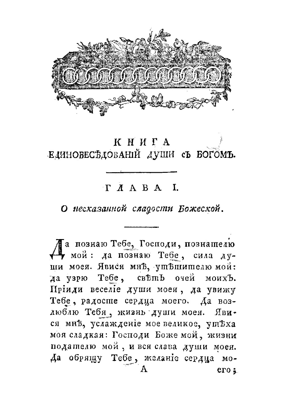 Заглавие оригинала: "Soliloquia animae ad deum"., Два других перевода вышли под заглавием: "Путь к познанию свойств божеских и человеческих", отд. издание, и "Уединенныя души с богом разговоры", в составе издание "Блаженнаго Августина Таинственная богословия", В 1787 г