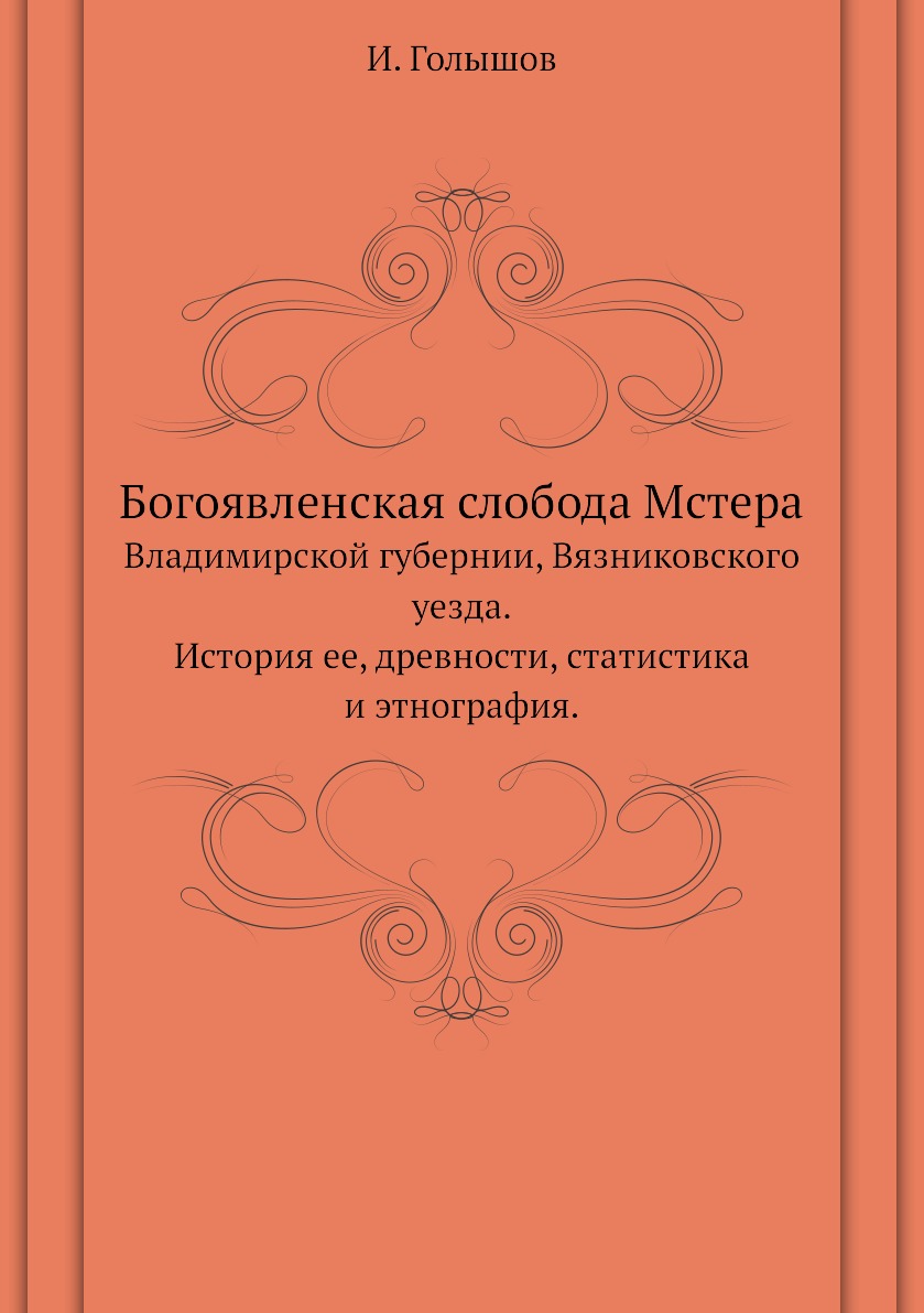 Печатная книга «Богоявленская слобода Мстера, Владимирской губернии, Вязниковского уезда.История ее, древности, статистика и этнография» в мягкой обложке, язык - русский. В книге 146 страниц, она напечатана на белой офсетной бумаге плотностью 80 г/м². Формат издания — 148x210 мм. Все книги аккуратно упаковываем в прочный трёхслойный непрозрачный картонный конверт.