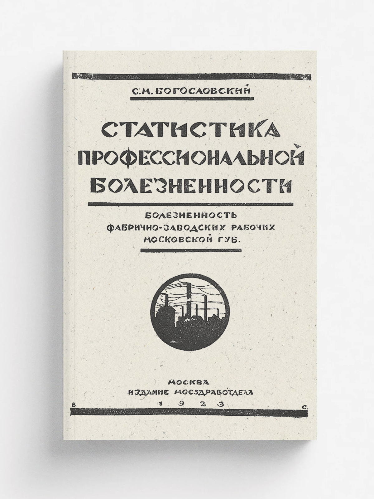 Богословский, Сергей Михайлович. Болезненность фабрично-заводских рабочих Московской губернии / Врач С. М. Богословский. — Москва : Мосздравотд., 1923. — IV, 346, II с. : табл.; 28 см. — (Статистика профессиональной болезненности).
