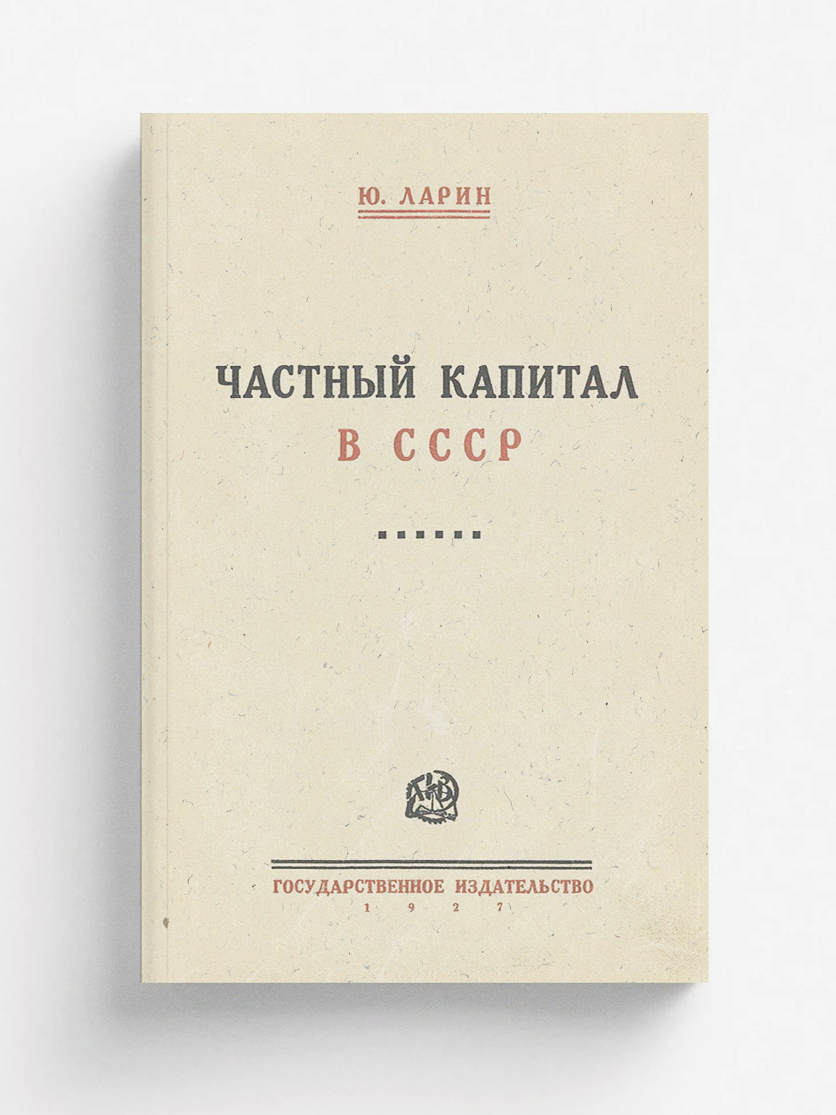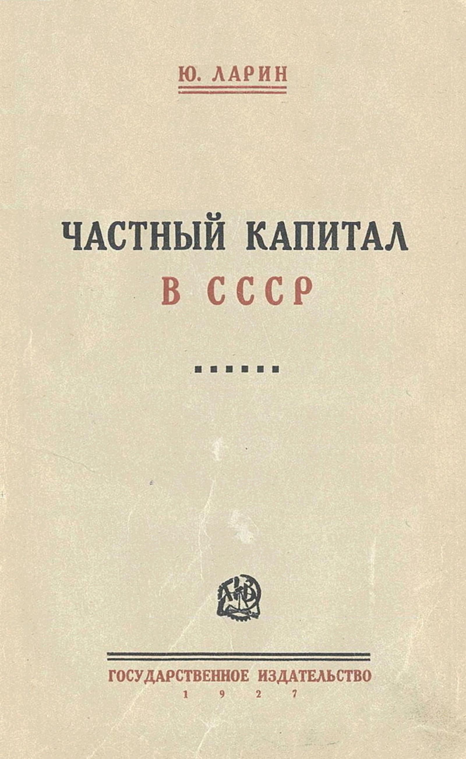 Ларин, Юрий (1882-1932). Частный капитал в СССР [Текст] / Ю. Ларин. — Москва ; Ленинград : Гос. изд-во, 1927 (М. : тип. «Красный пролетарий»). — 312 с.; 25?16 см.
