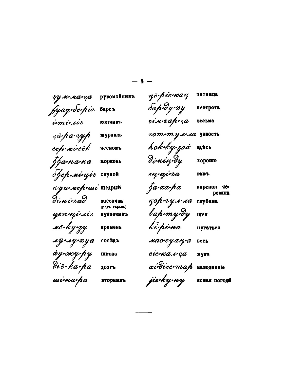 Предлагаемый букварь составлен Иваном Бартоломеем при содействии природных чеченцев юнкера Джемал-Эддина Мустафина, Эдык Бочарова и Ахмат-хана Трамова. Первые статьи до 32 страницы переведены с русского языка, остальные же, собранные и доставленные Эдыком Бочаровым, суть народные повести и рассказы, отчасти взятые с арабского, но приспособленные к чеченской жизни. Чеченский текст с 32 страницы, как изустное предание народных сказочников, без сомнения, чище и изящнее сделанных наскоро переводов с русского языка. Из большого запаса народных сказок они старались извлекать только такие, которые по содержанию своему наименее вредны, а иные даже поучительны для детей.