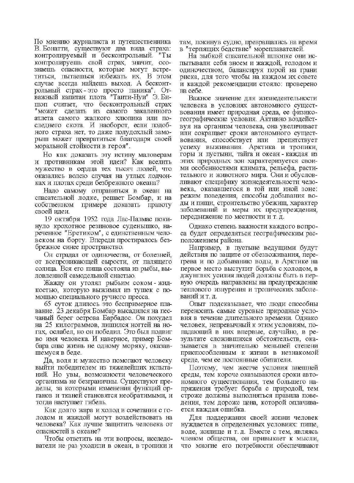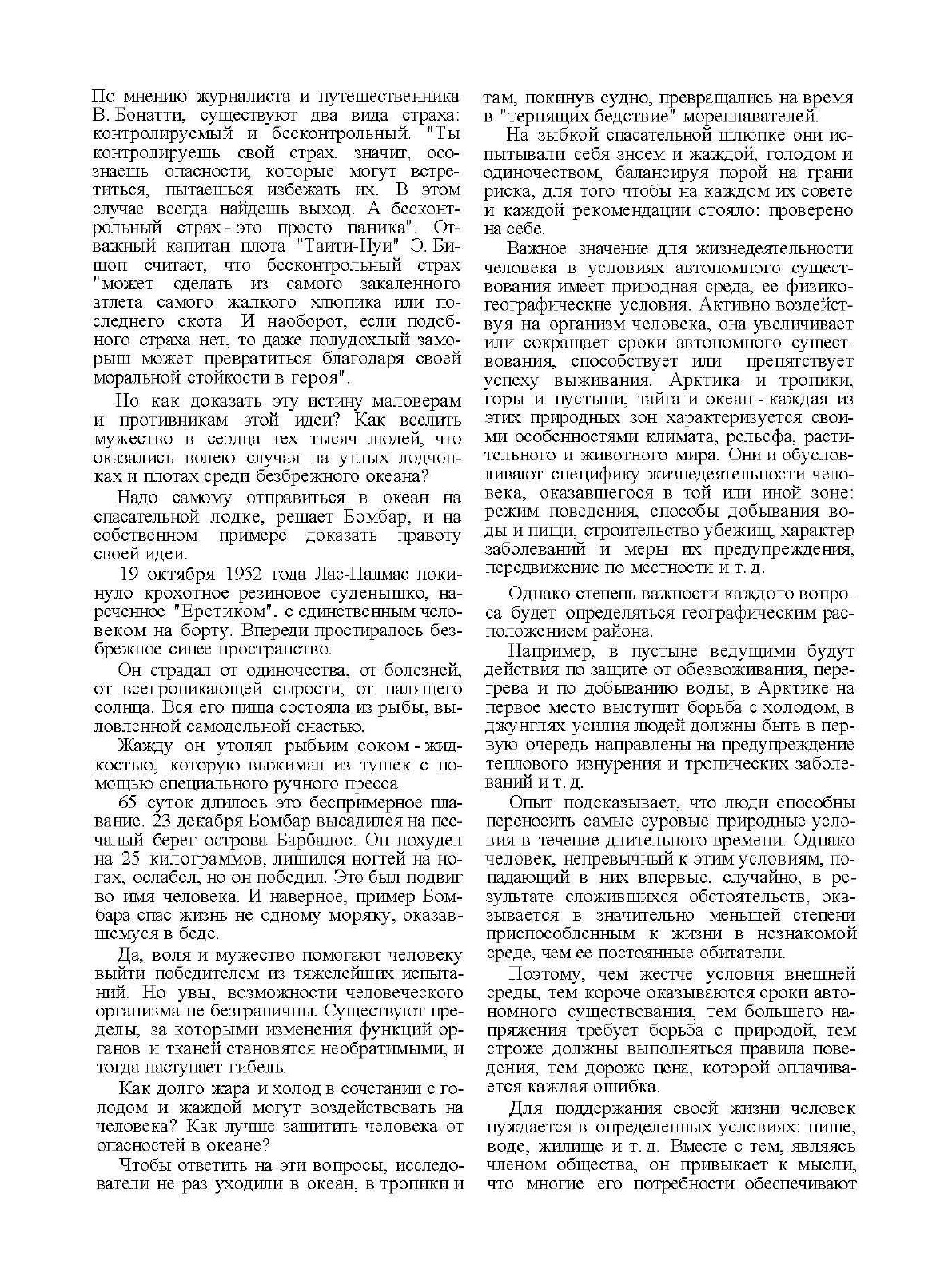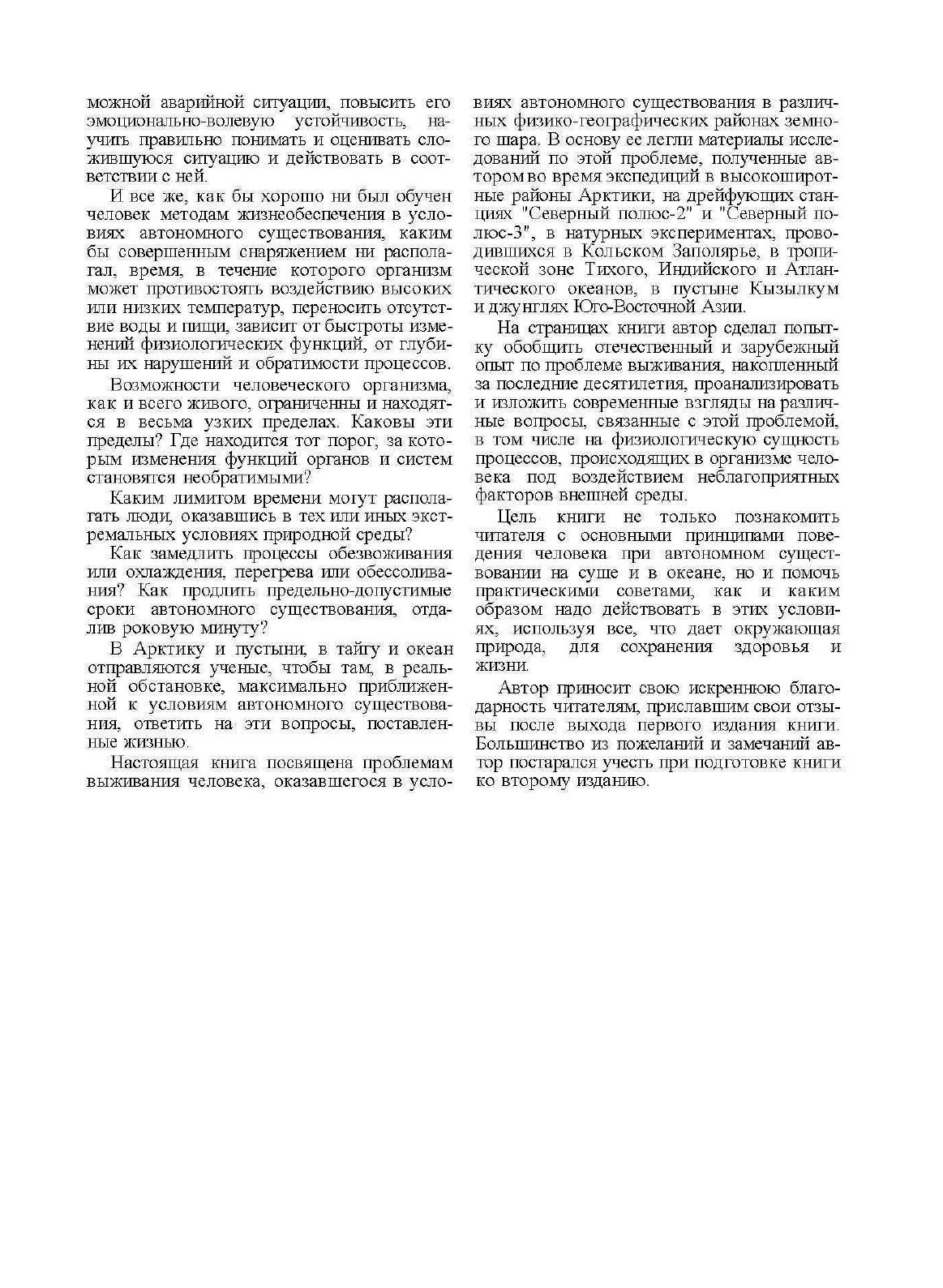 В книге систематизирован минимум знаний, необходимых в различных природных условиях для сохранения жизни и здоровья в критических ситуациях. Книга полезна туристам, путешественникам и любителям экстремального времяпрепровождения и просто для общего развития.
