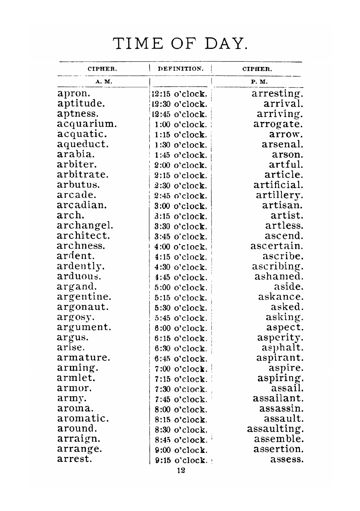 Cipher Code Of Words, Phrases, Names Of Organizations And Titles Of Their Officers, Names Of Principal Railroads, Months, Days, Time Of Day, Alphabet and Figures. Telegraphic Correspondence
