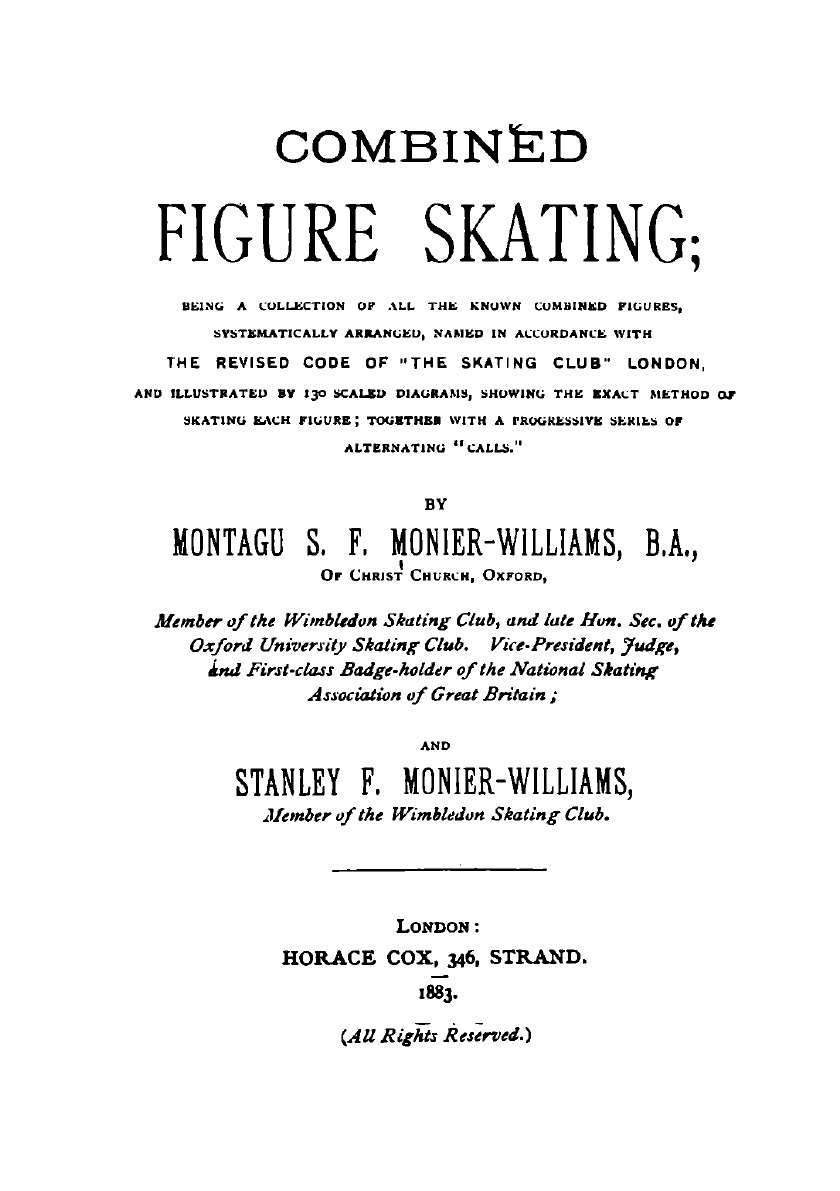 Combined Figure Skating; Being a Collection of All the Known Combined Figures, Systematically Arranged, Named in Accordance with the Revised Code of "The Skating Club" London, and Illustrated by 130 Scaled Diagrams, Showing the Exact Method of Skating Each Figure; Together with a Progressive Series of Alternating "Calls".