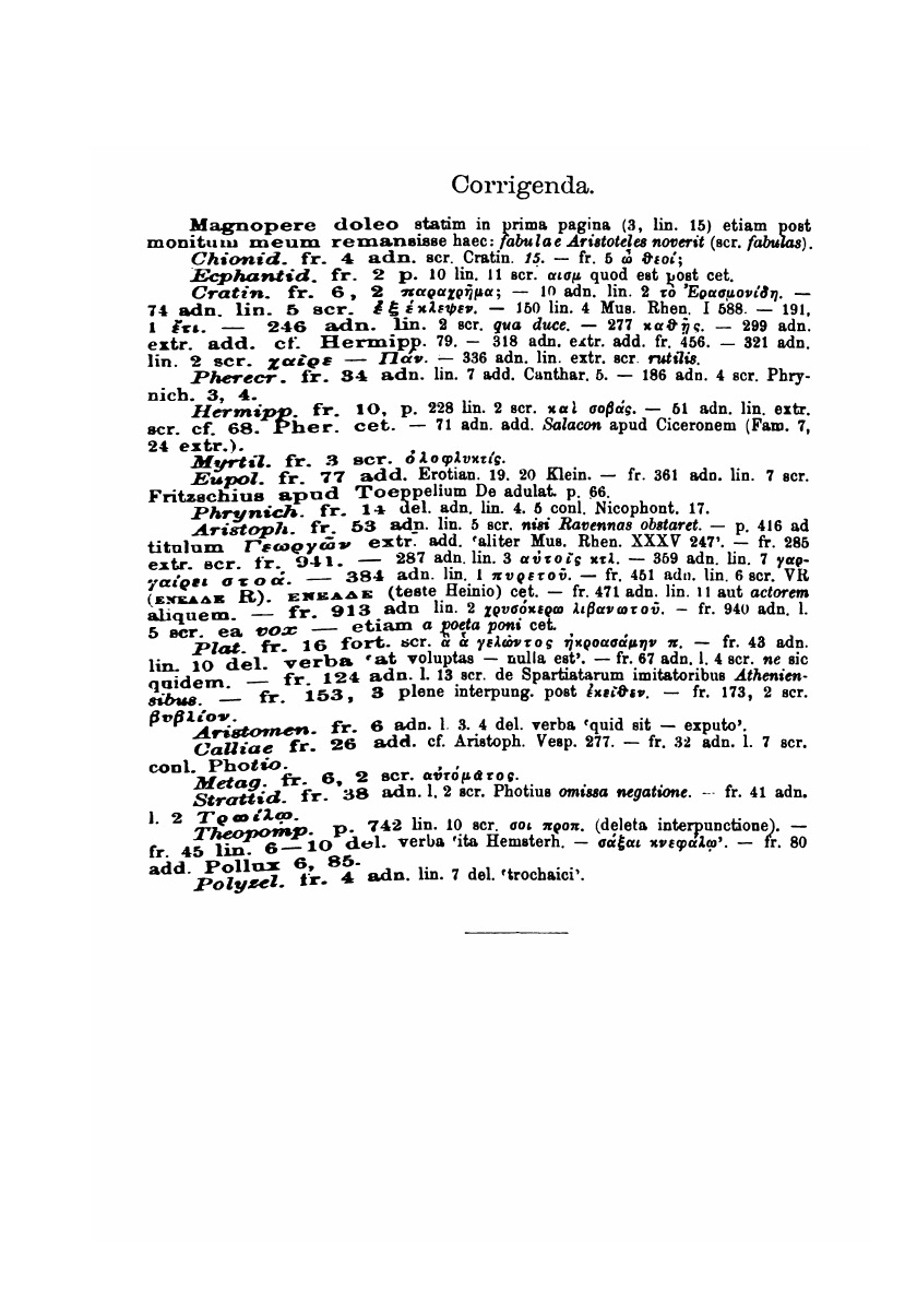 Comicorum Atticorum Fragmenta, Volume 1.Antiquae Comoediae Fragmenta.