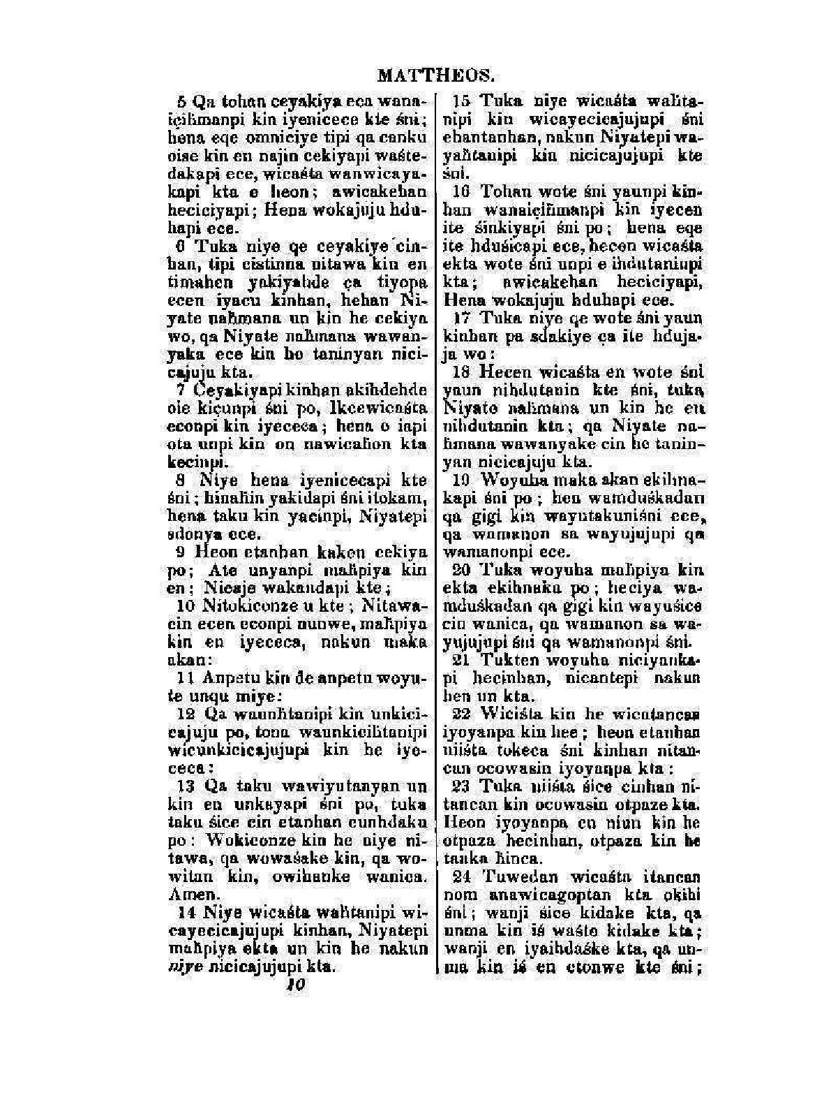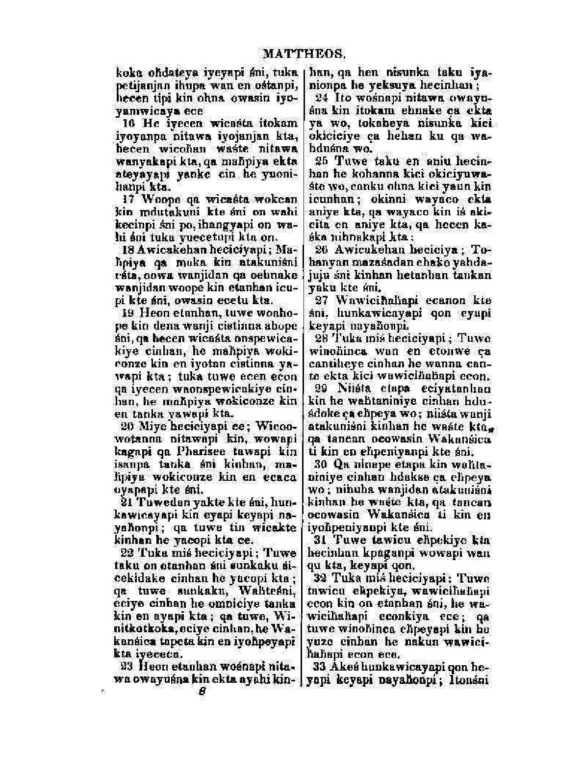 Печатная книга «Dakota wowapi wakan kin, The New Testament» в мягкой обложке, язык - дакота. В книге 410 страниц, она напечатана на белой офсетной бумаге плотностью 80 г/м². Формат издания — 205x280 мм. Все книги аккуратно упаковываем в прочный трёхслойный непрозрачный картонный конверт.