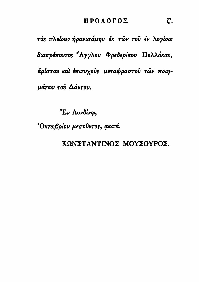 Dante`s inferno translated info greek verse by Musurus pasha, D.C.L.