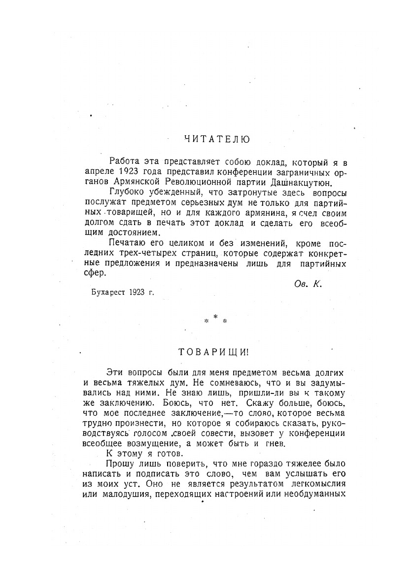 С предисловием С. Ханояна.Целью книги является ознакомление читателей с политическо-партийными переломами и переживаниями, которые существуют в заграничных армянских кругах, и в особенности в рядах дашнаков.Тифлис, Заккнига, 1927