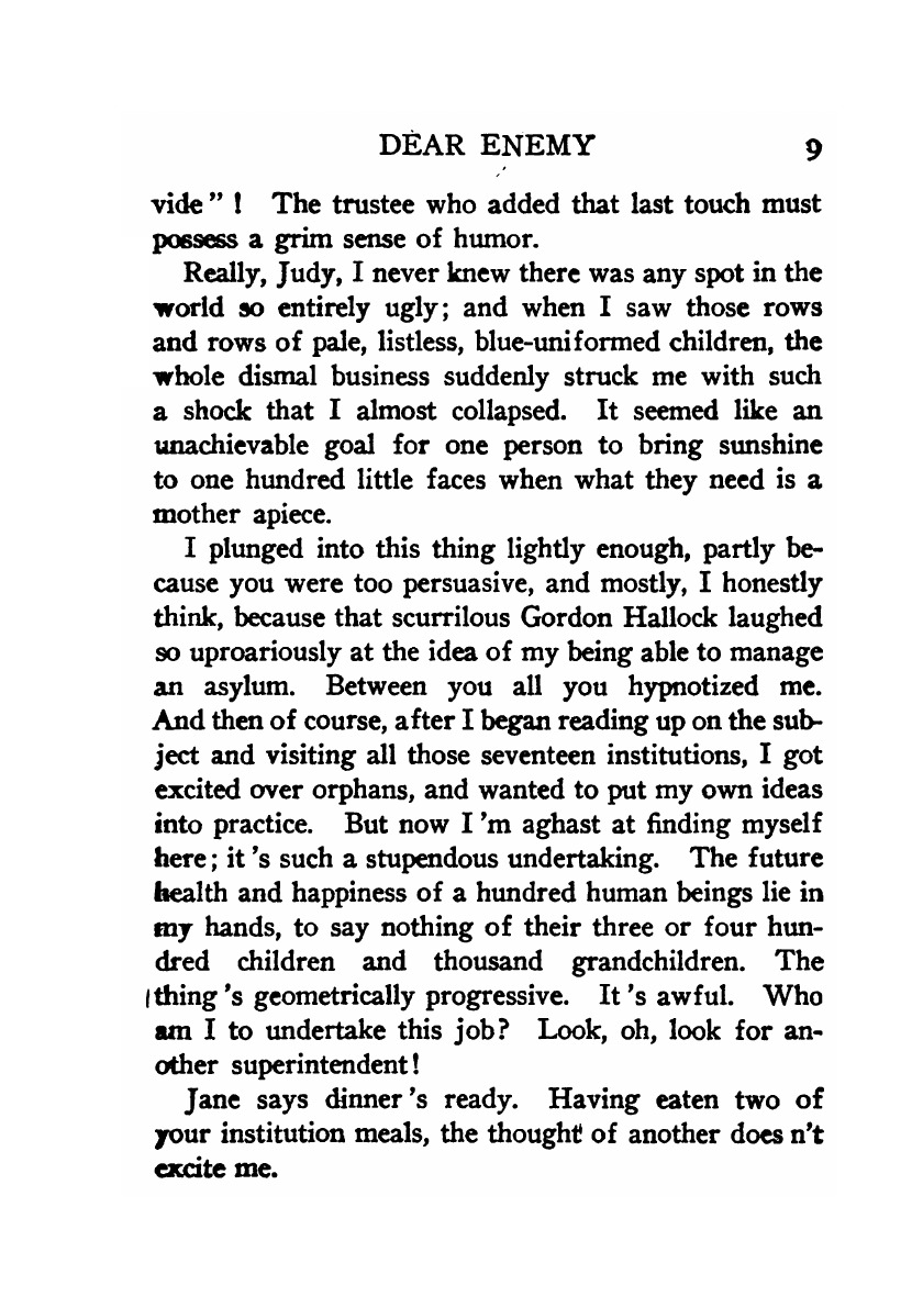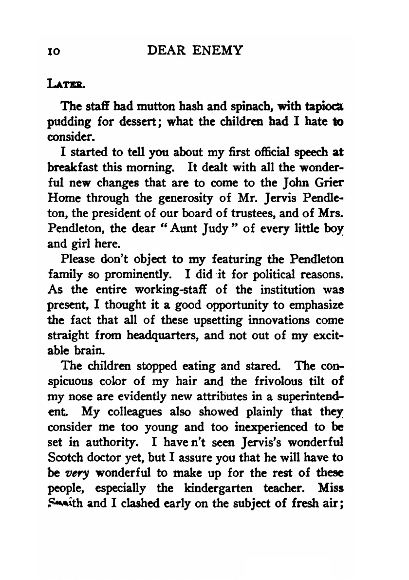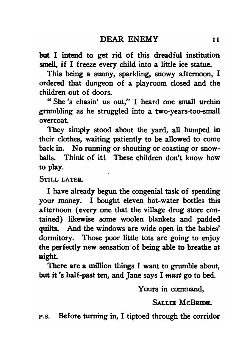 Печатная книга «Dear Enemy» в мягкой обложке, язык - английский. В книге 348 страниц, она напечатана на белой офсетной бумаге плотностью 80 г/м². Формат издания — 148x210 мм. Все книги аккуратно упаковываем в прочный трёхслойный непрозрачный картонный конверт.