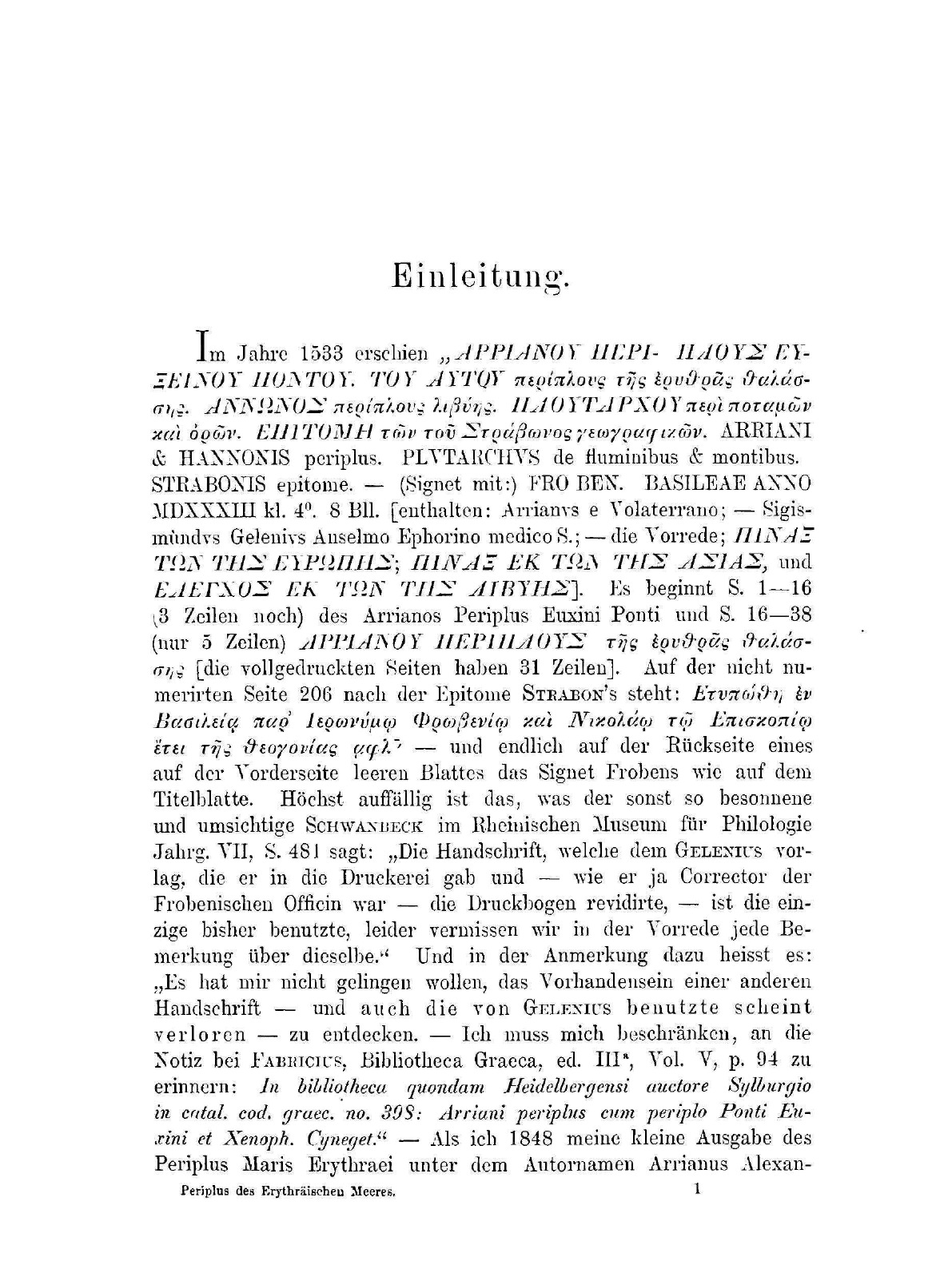 Der Periplus des erythräischen Meeres von einem Unbekannten. Griechisch und deutsch mit kritischen und erklärenden Anmerkungen nebst vollständigem Wörterverzeichnisse von B. Fabricius.