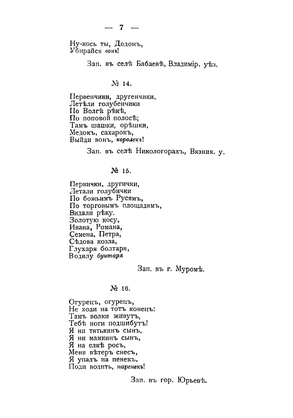 "Детские игры и песни" являются продолжением материала, данного автора в его статье "Обряды и обычаи при рождении младенца и колыбельные песни Владимерской губернии"