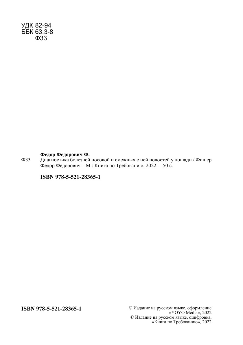 Печатная книга «Диагностика болезней носовой и смежных с ней полостей у лошади» в мягкой обложке, язык - русский. В книге 50 страниц, она напечатана на белой офсетной бумаге плотностью 80 г/м². Формат издания — 148x210 мм. Все книги аккуратно упаковываем в прочный трёхслойный непрозрачный картонный конверт.