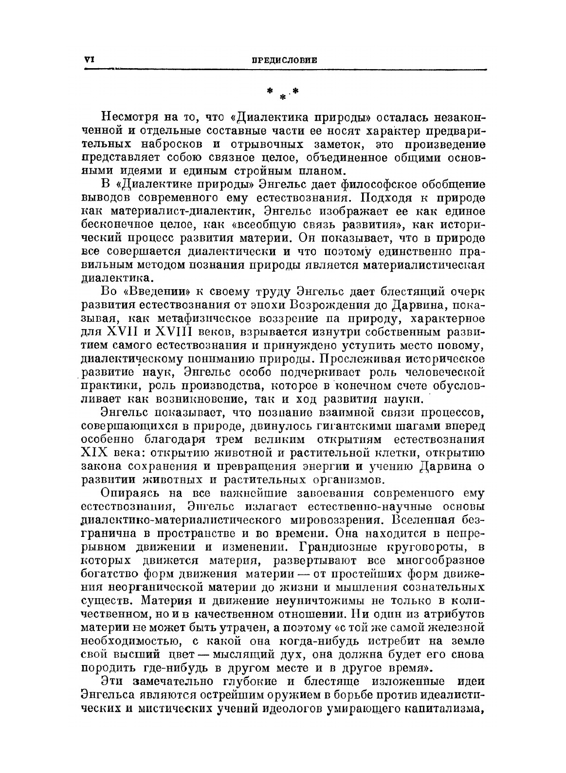 В "Диалектике природы" Ф.Энгельс дает философское обобщение выводов современного ему естествознания. Подходя к природе как материалист-диалектик, Энгельс изображает ее как единое бесконечное целое, как "всеобщую связь развития", как исторический процесс развития материи. Он показывает, что в природе все совершается диалектически и что поэтому единственно правильным методом познания природы является материалистическая диалектика.