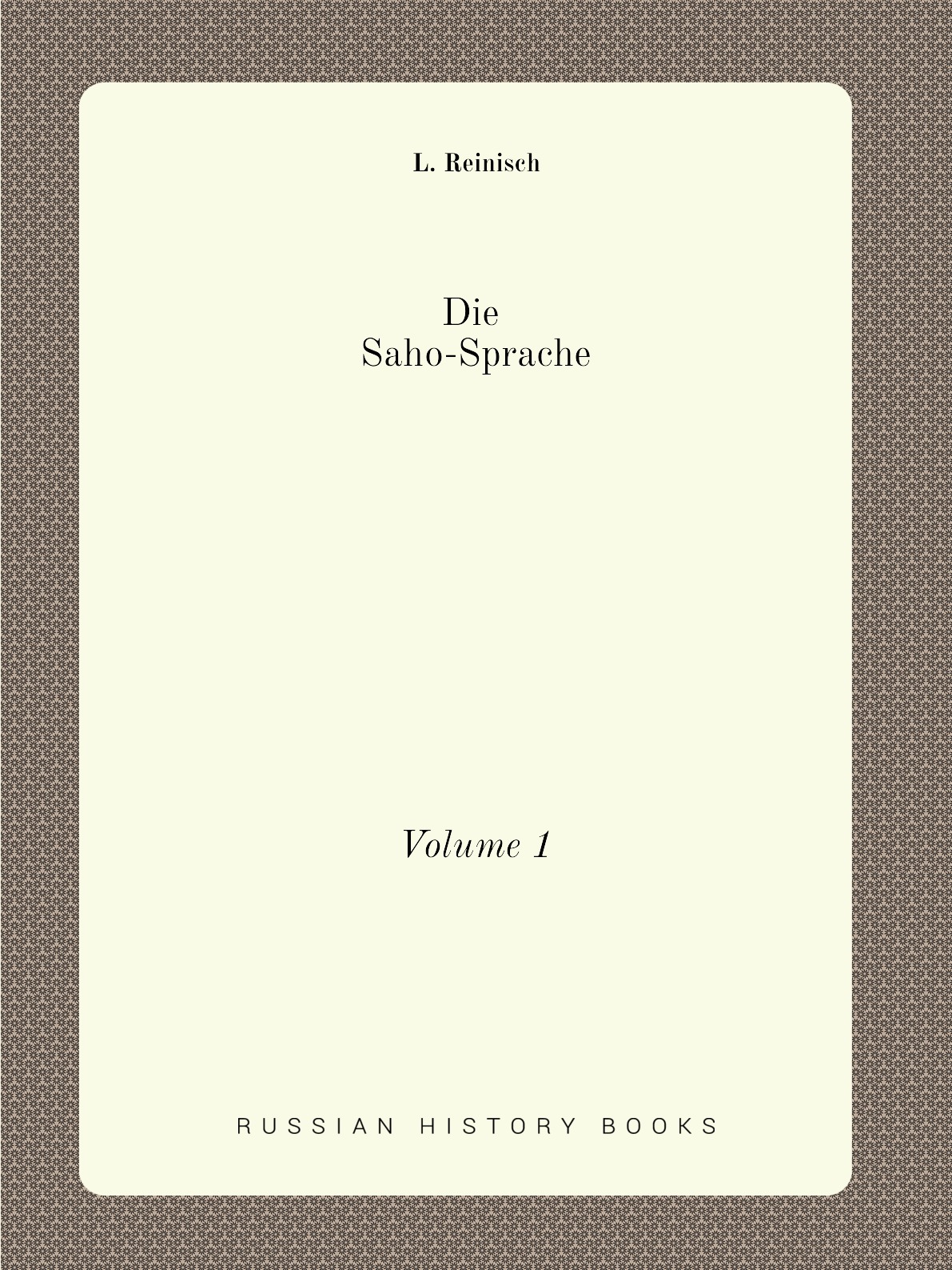 "Die Saho-Sprache, Volume 1" by L. Reinisch. Reprinted from original 1889 edition.(A. Hölder)
