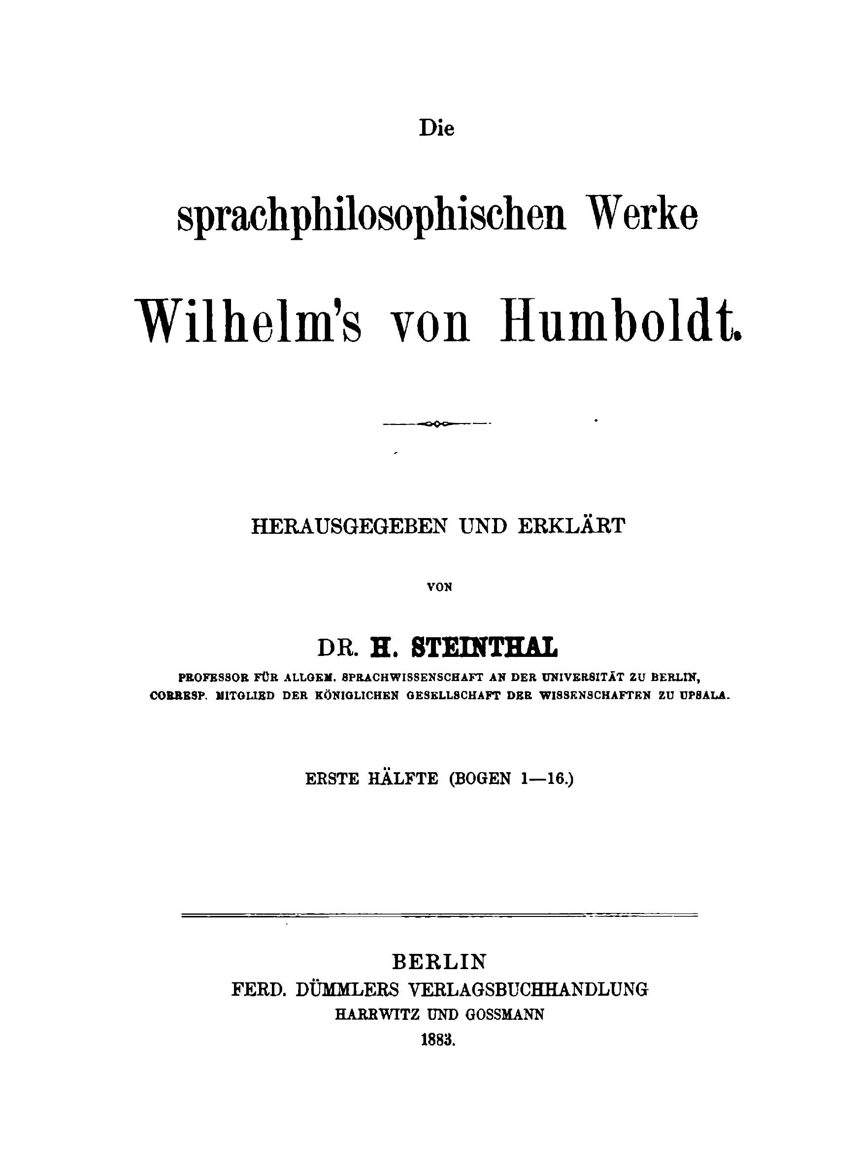 Печатная книга «Die Sprachphilosophischen Werke Wilhelm's Von Humboldt, Hälfte 1» в мягкой обложке, язык - немецкий. В книге 708 страниц, она напечатана на белой офсетной бумаге плотностью 80 г/м². Формат издания — 205x280 мм. Все книги аккуратно упаковываем в прочный трёхслойный непрозрачный картонный конверт.