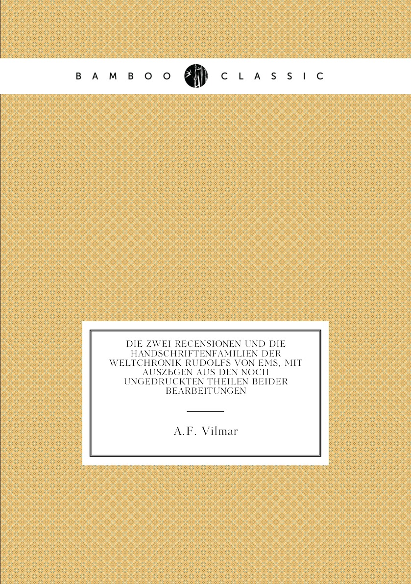 Печатная книга «Die Zwei Recensionen Und Die Handschriftenfamilien Der Weltchronik Rudolfs Von Ems, Mit Auszügen Aus Den Noch Ungedruckten Theilen Beider Bearbeitungen» в мягкой обложке, язык - немецкий. В книге 92 страниц, она напечатана на белой офсетной бумаге плотностью 80 г/м². Формат издания — 148x210 мм. Все книги аккуратно упаковываем в прочный трёхслойный непрозрачный картонный конверт.