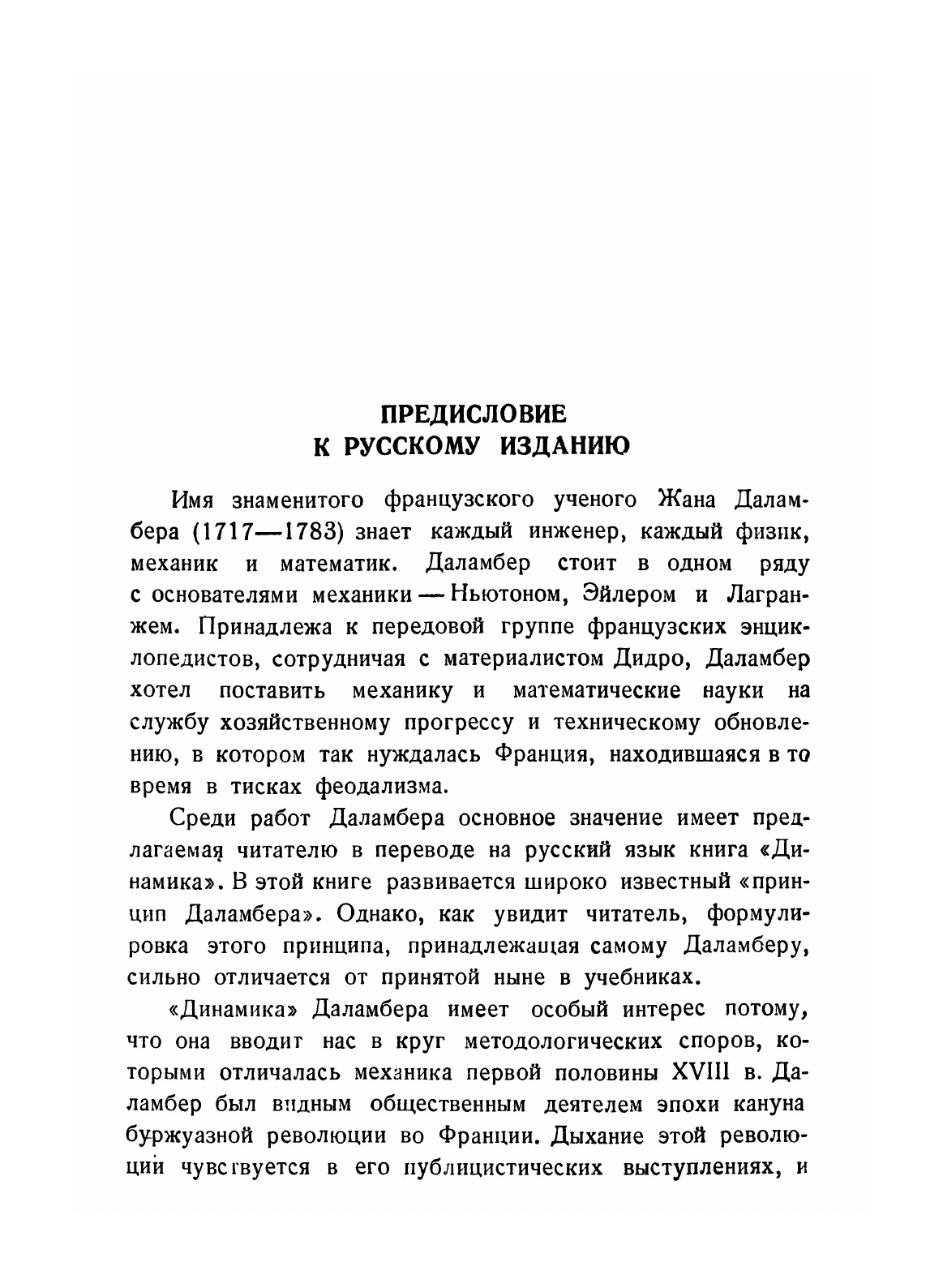 Имя знаменитого французского ученого Жана Даламбера (1717–1783) знает каждый инженер, каждый физик, механик или математик.Среди работ Даламбера основное значение имеет предлагаемая читателю в переводе на русский язык книга «Динамика». В этой книге развивается широко известный «принцип Даламбера». Однако, как увидит читатель, формулировка этого принципа, принадлежащая самому Даламберу, сильно отличается от принятой ныне в учебниках.