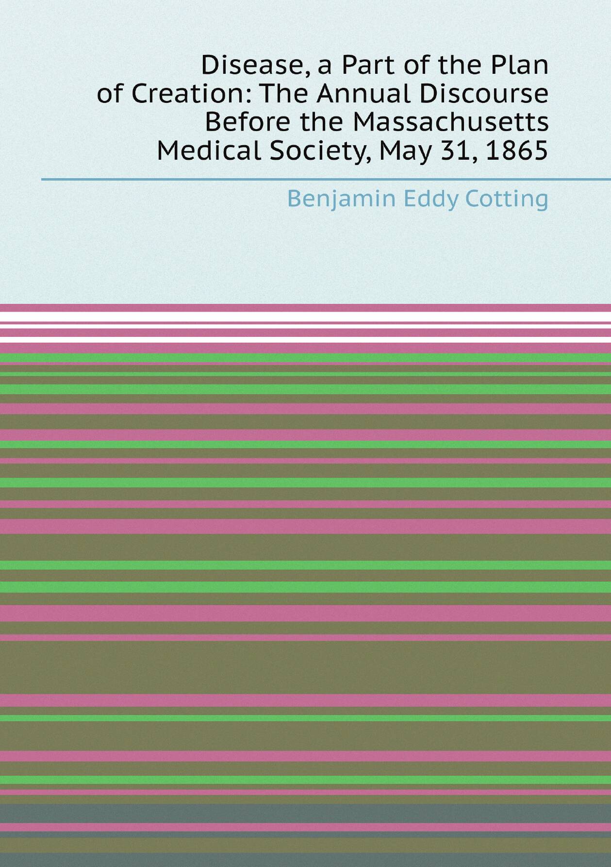 Печатная книга «Disease, a Part of the Plan of Creation: The Annual Discourse Before the Massachusetts Medical Society, May 31, 1865» в мягкой обложке, язык - английский. В книге 66 страниц, она напечатана на белой офсетной бумаге плотностью 80 г/м². Формат издания — 148x210 мм. Все книги аккуратно упаковываем в прочный трёхслойный непрозрачный картонный конверт.