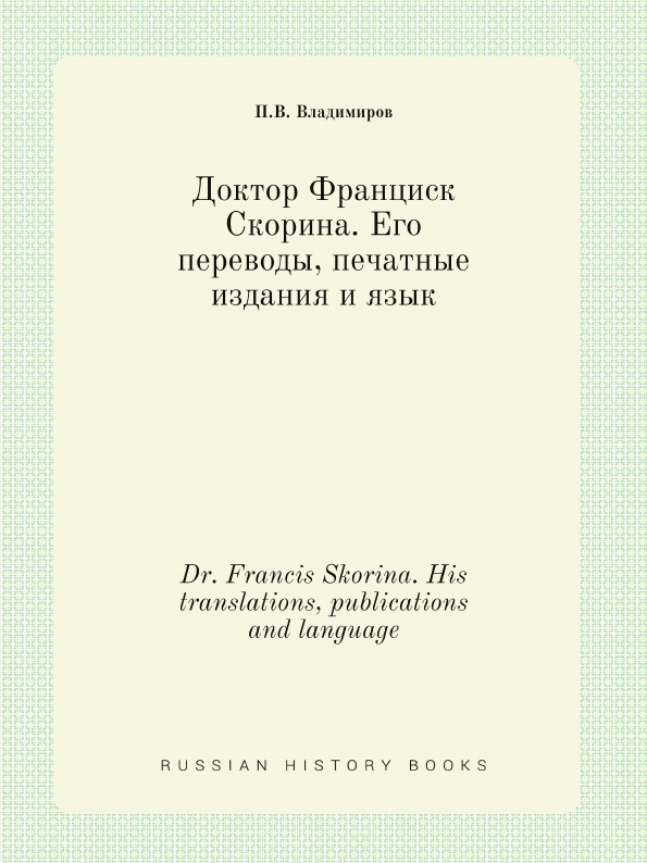 Печатная книга «Доктор Франциск Скорина. Его переводы, печатные издания и язык, Dr. Francis Skorina. His translations, publications and language» в мягкой обложке, язык - русский. В книге 406 страниц, она напечатана на белой офсетной бумаге плотностью 80 г/м². Формат издания — 205x280 мм. Все книги аккуратно упаковываем в прочный трёхслойный непрозрачный картонный конверт.
