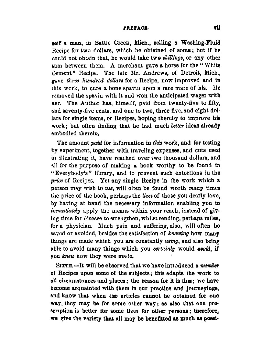 An invaluable collection of about eight hundred practical recipes for merchants, grocers, saloon-keepers, physicians, druggists ... and families generally: to which have been added a ratiional treatment of pleurisy, inflammation of the lungs, and other inflammatory diseases, and also for general female debility and irregularities.